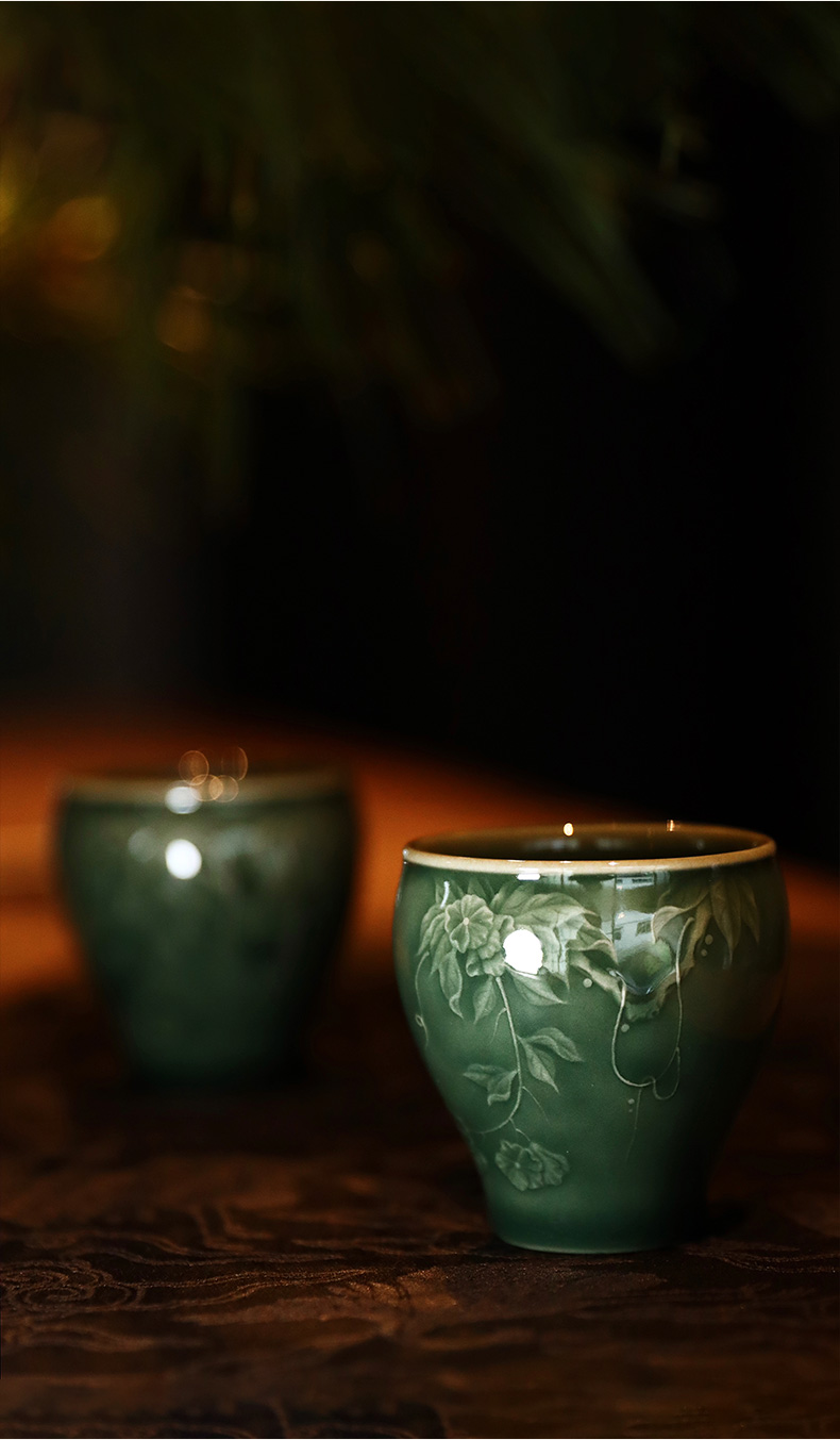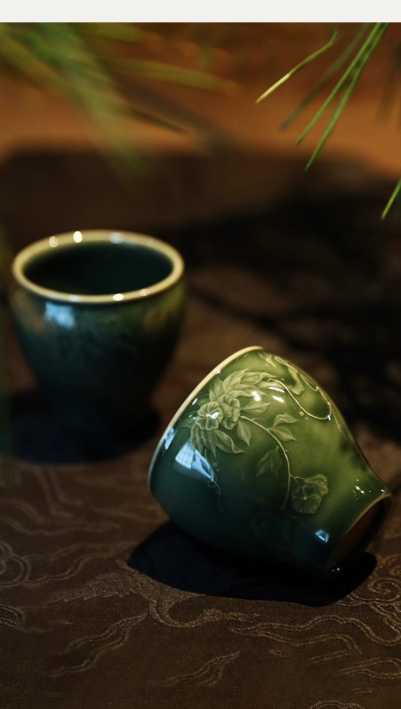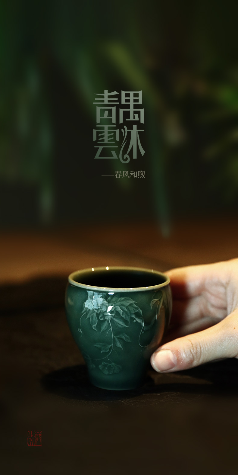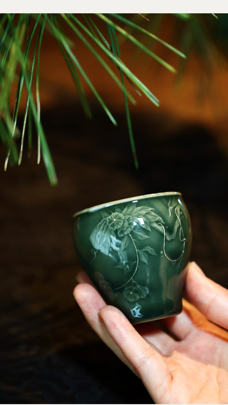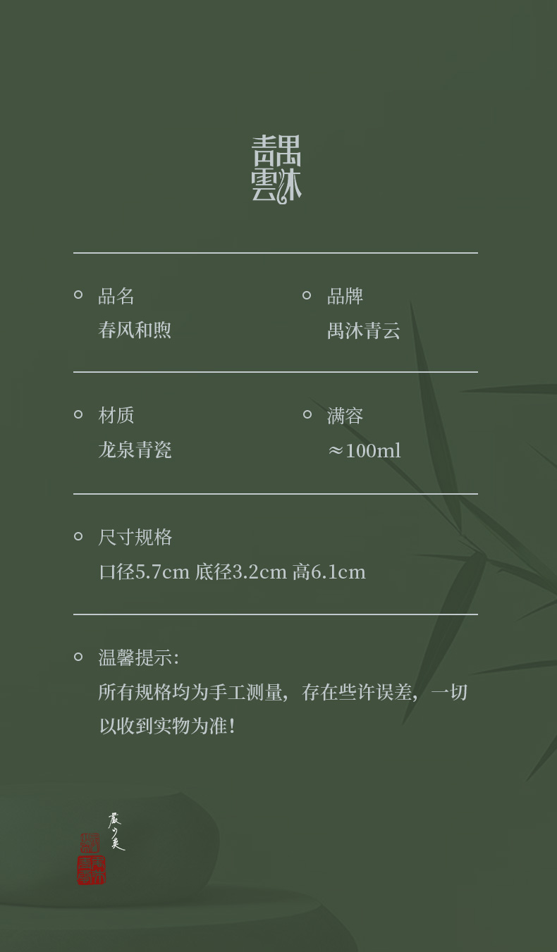 龙泉青瓷严少英春风和煦杯梅子青茶具陶瓷品茗杯主个人饮杯高档功夫茶道
