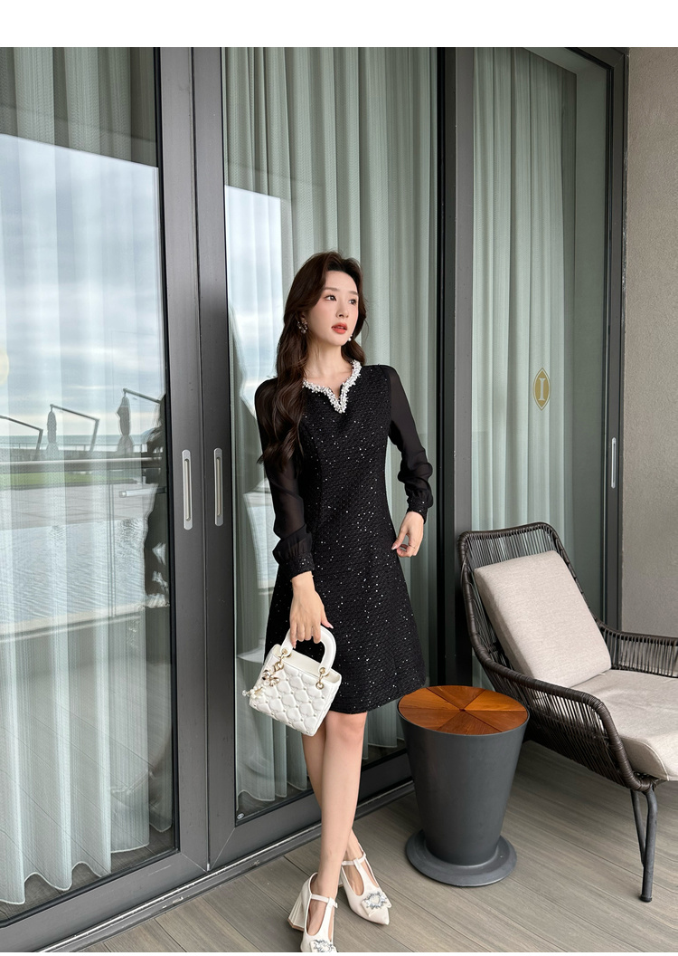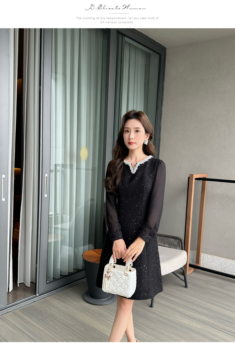 奢姿大码女装2025秋季减龄钉珠装饰连衣裙胖妹妹半开领时尚裙子9943863136