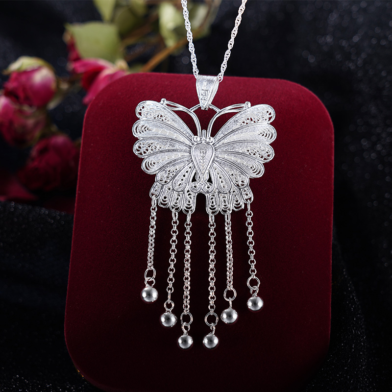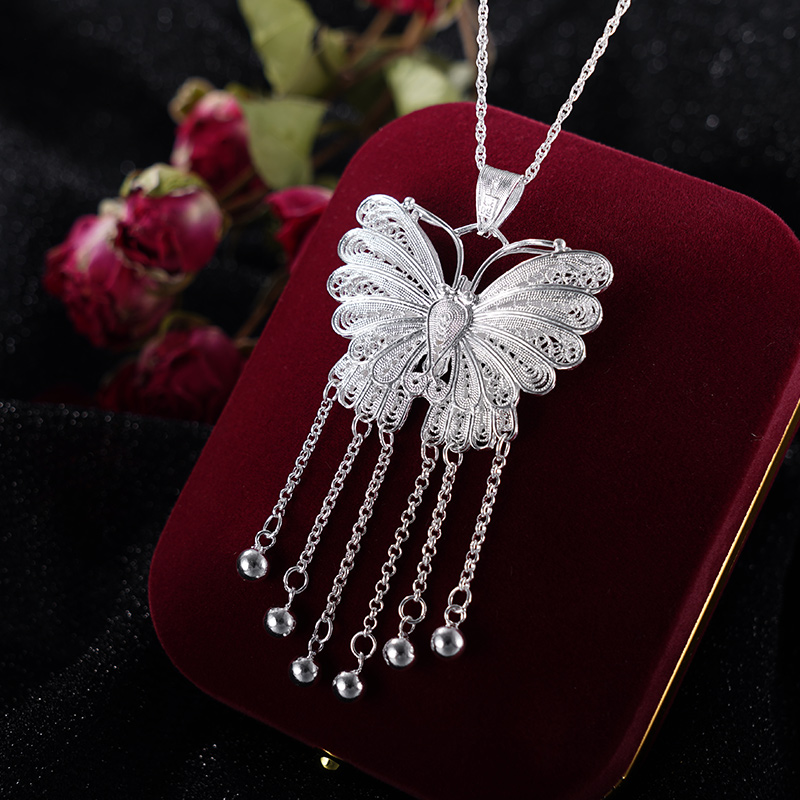 【寓意】:吊坠以蝴蝶为灵感设计,通过银花丝工艺缠绕编织,打造呼吸感镂空纹理,寓意传递幸福与美好。