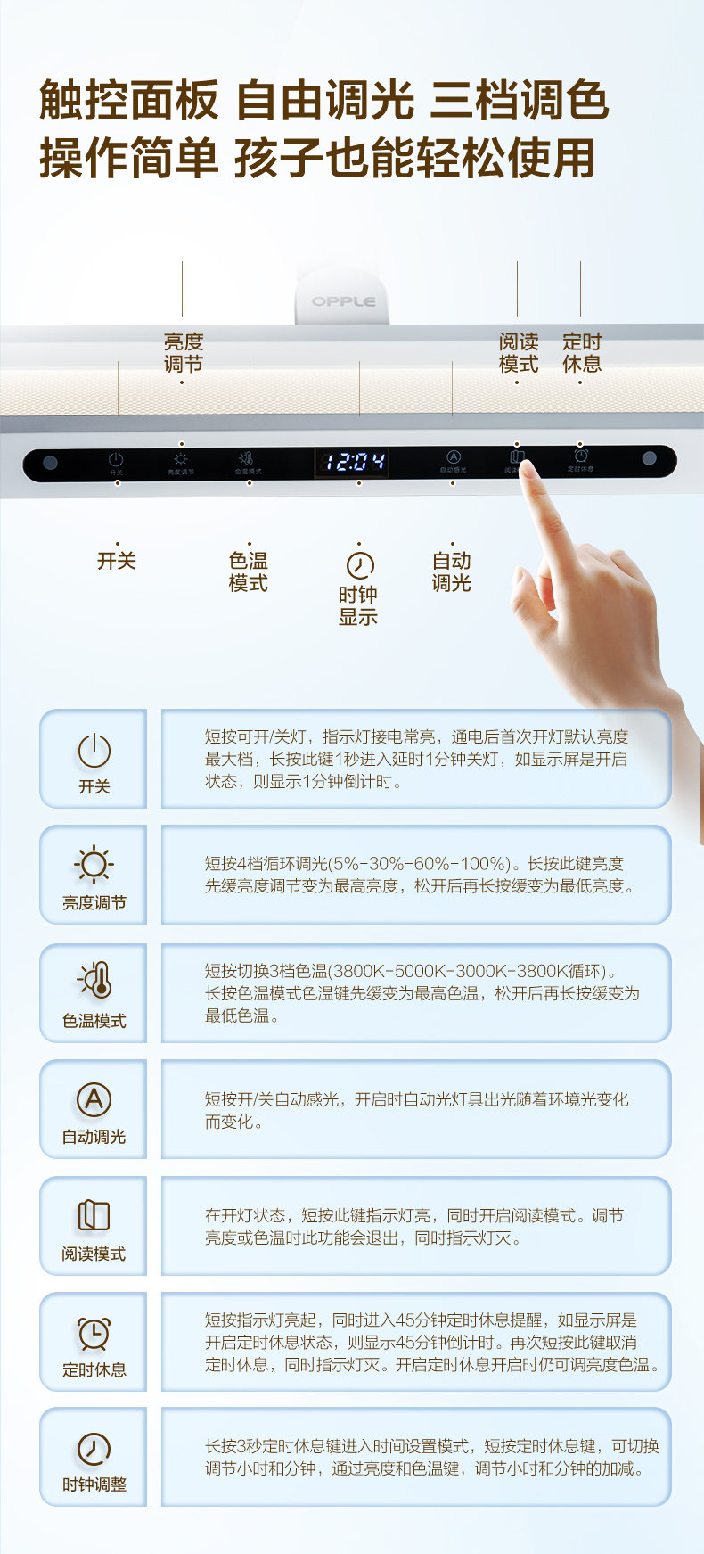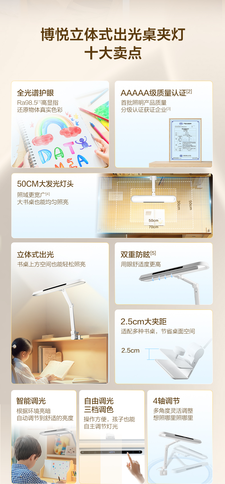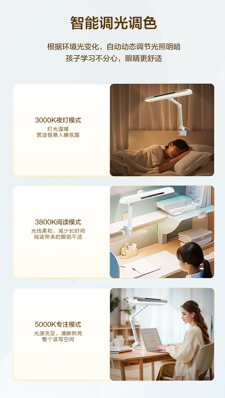 OPPLE欧普照明博轩桌夹款立体光5A智能调光T型护眼台灯