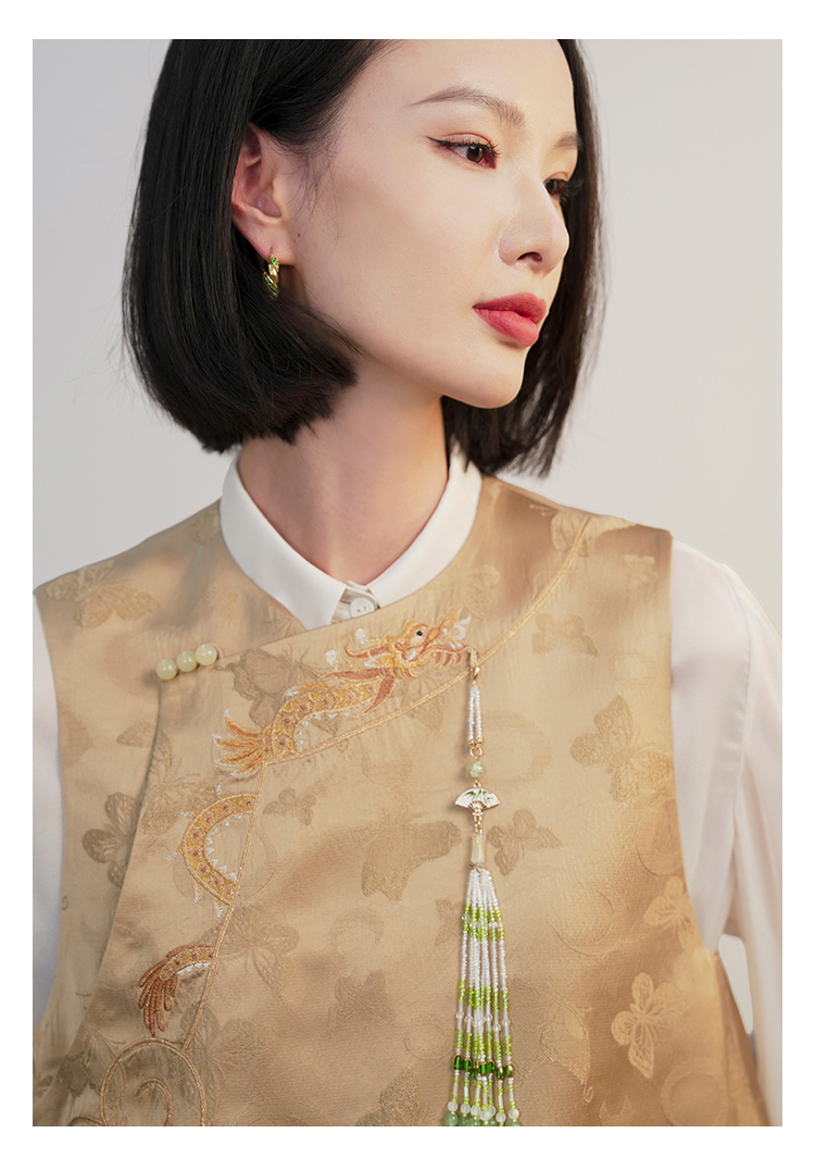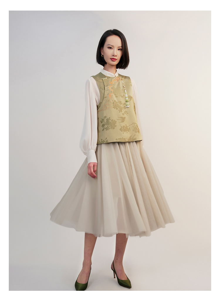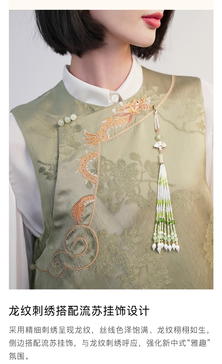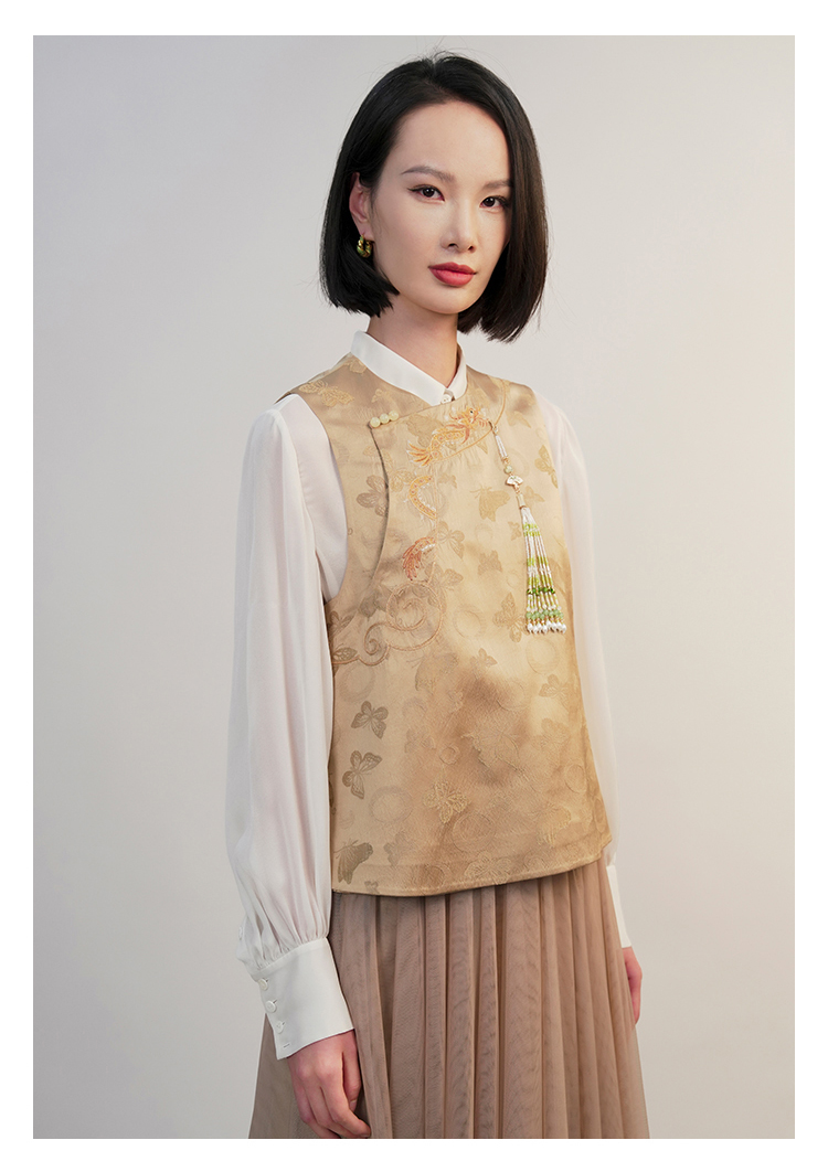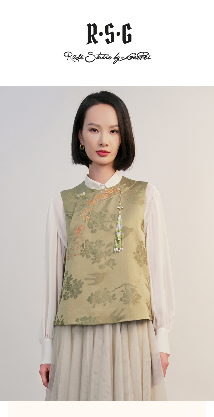 郭培成衣RSG新中式芙蓉花提花刺绣斜襟马甲2025中国风旗袍上衣