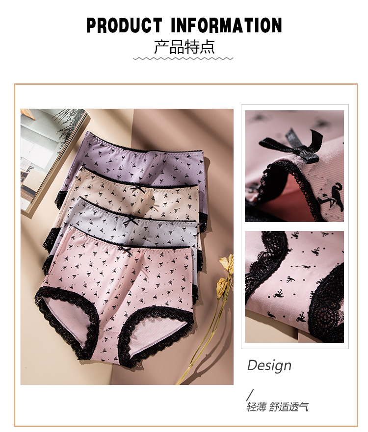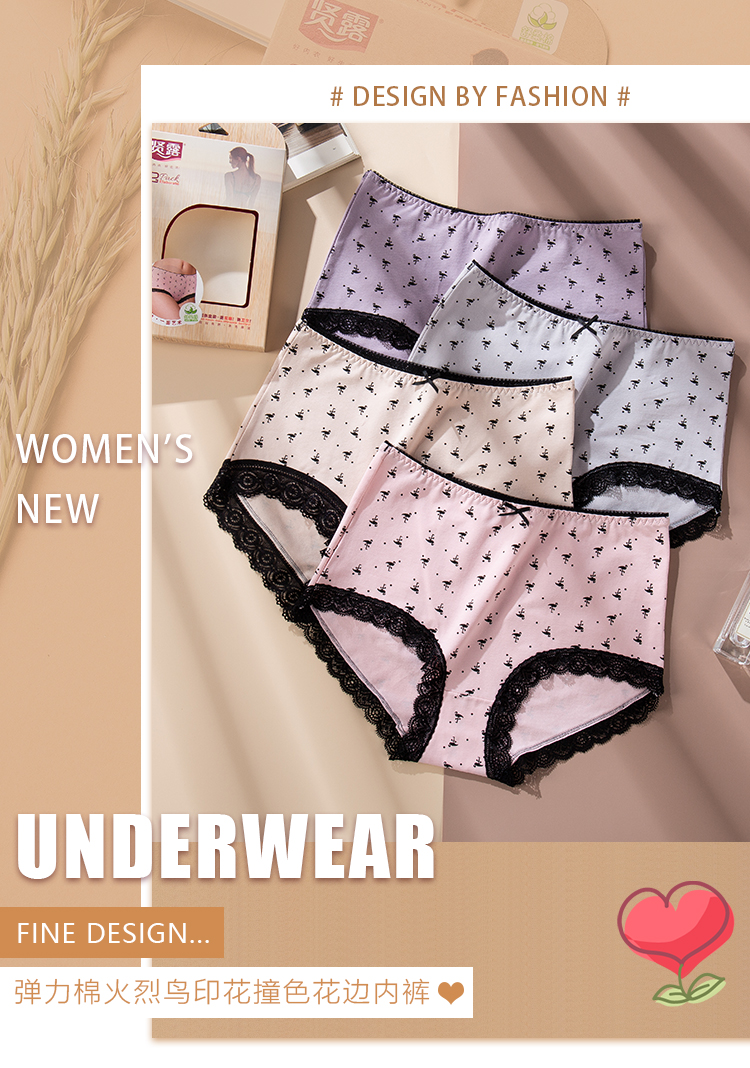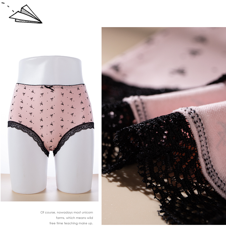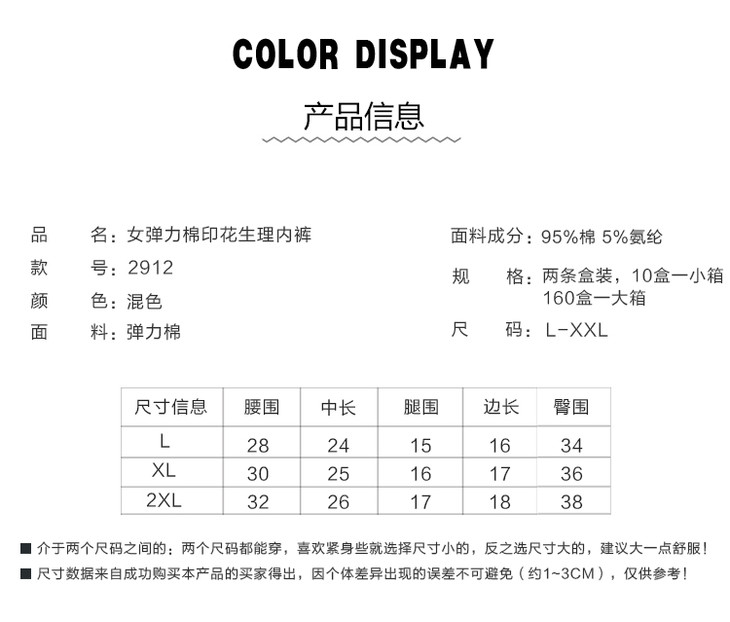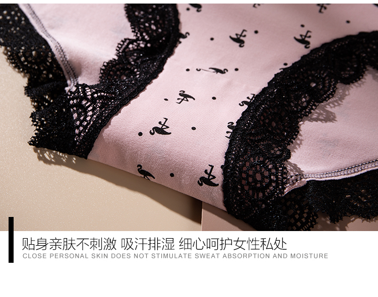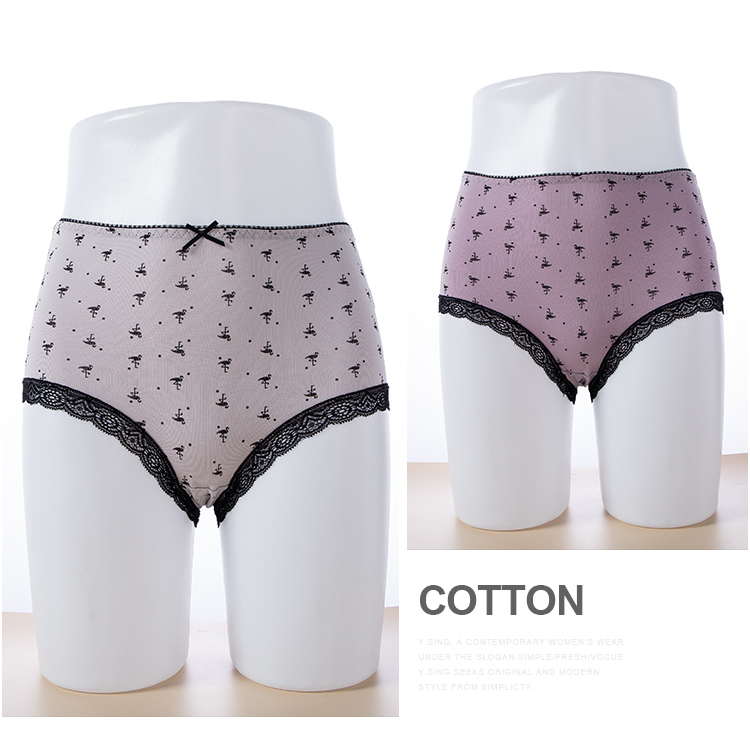 (一盒两条)女士精梳棉生理防漏弹力棉印花蕾丝边内裤2912/2894