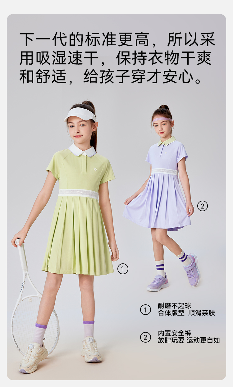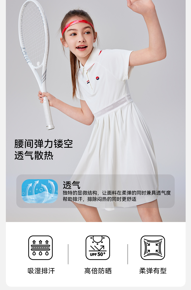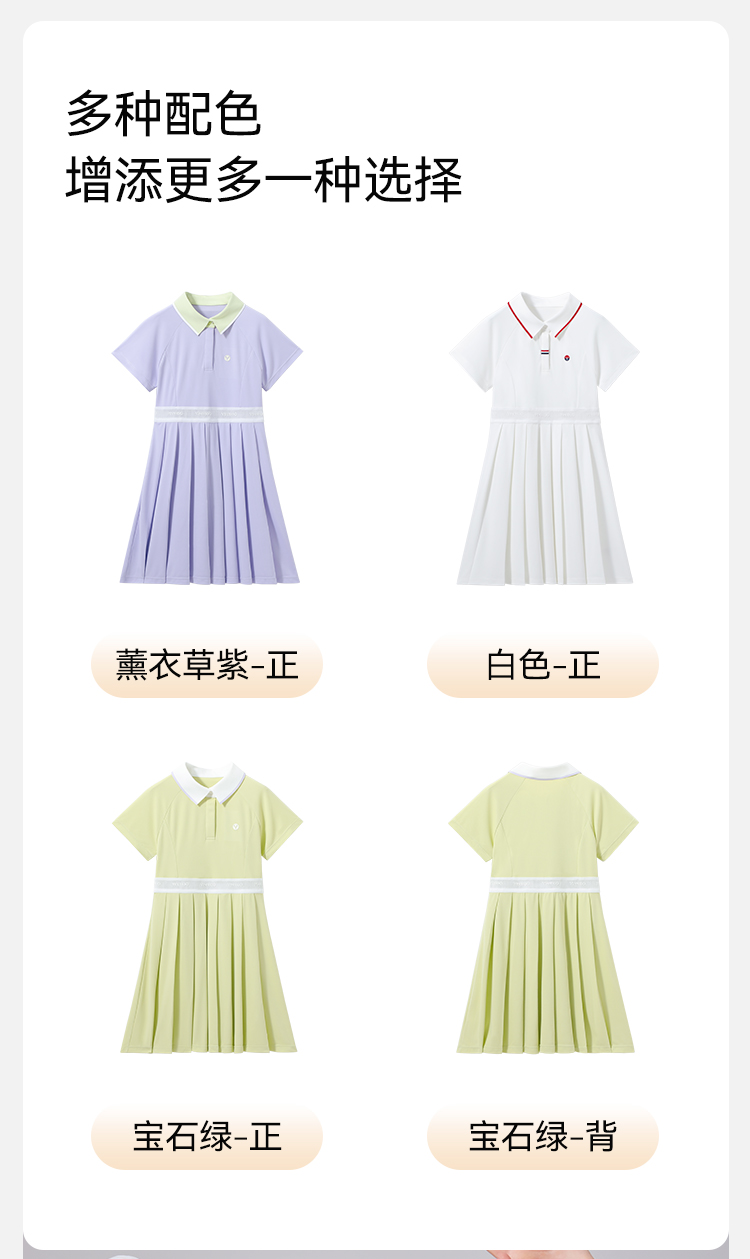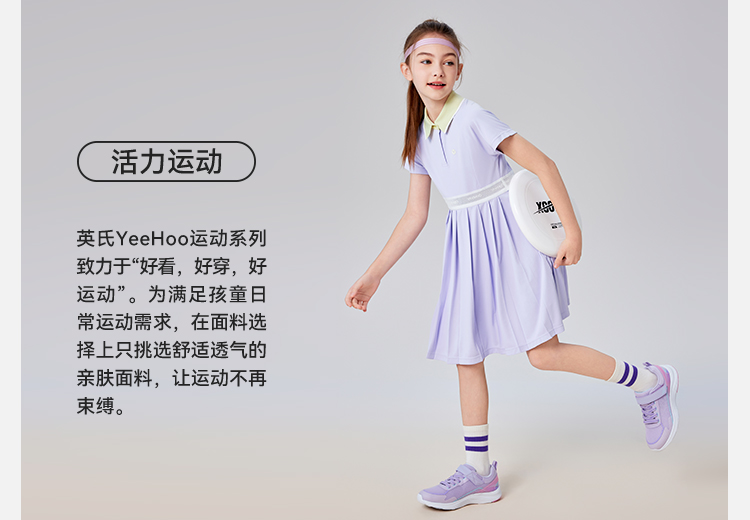 【英氏限时清仓】【UPF50+防晒速干】【140-165】女童夏季短袖polo裙子