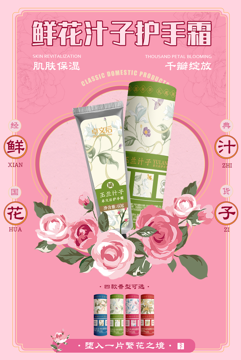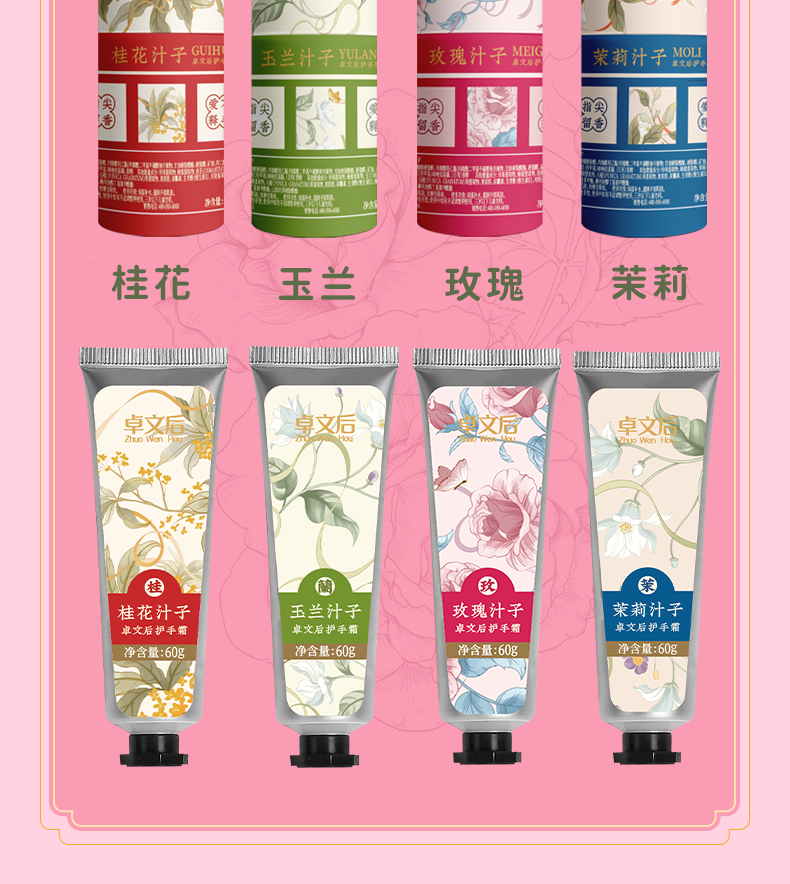 【百年老品牌 非物质文化遗产】贞格格卓文后鲜花汁子护手霜 桂花 玉兰 玫瑰 茉莉手部护理花香60g