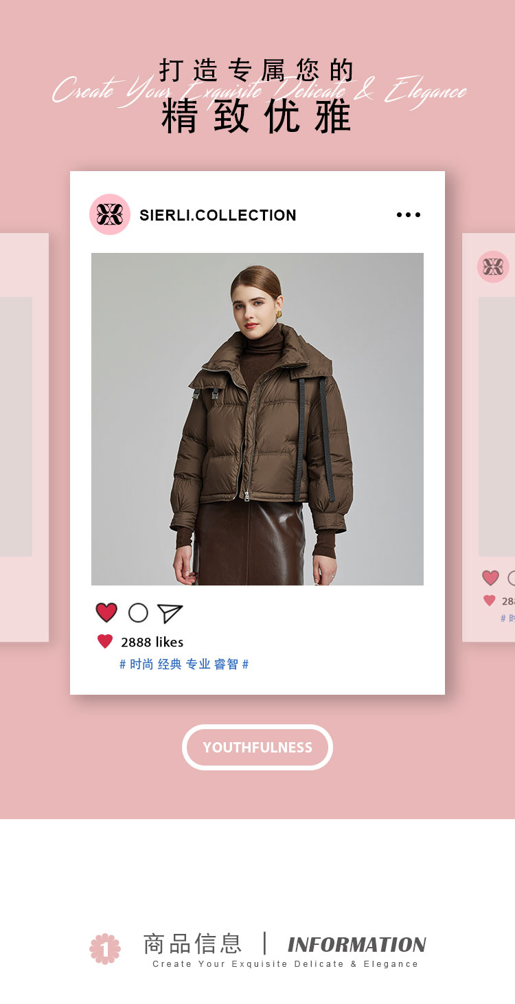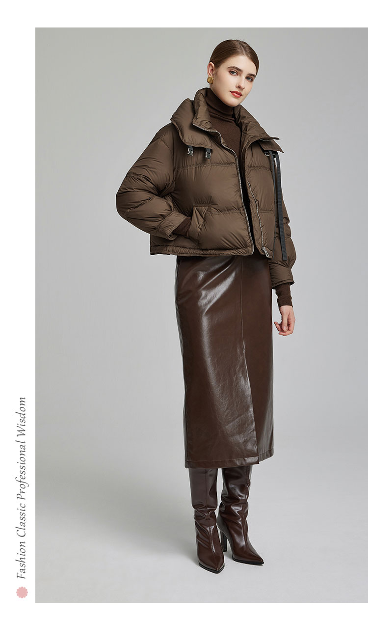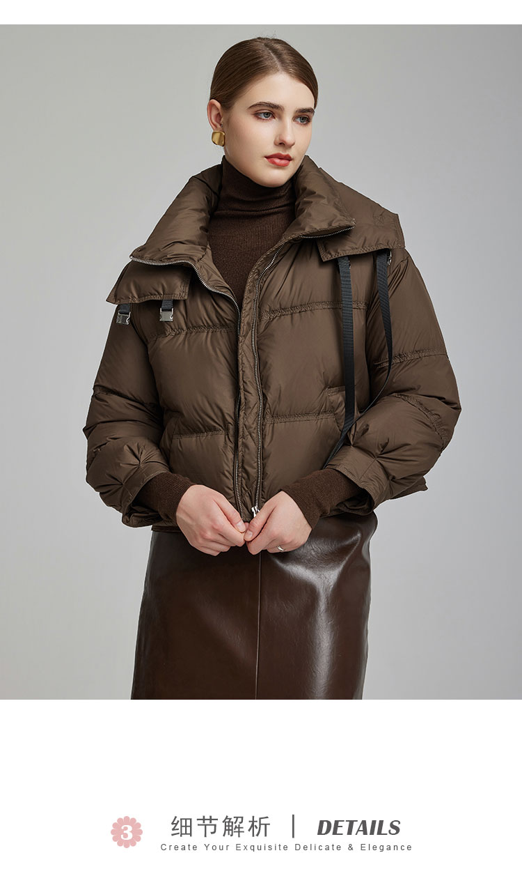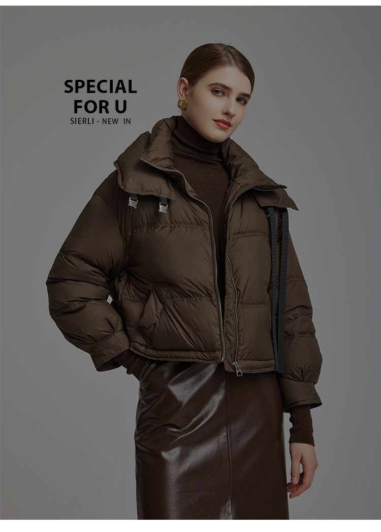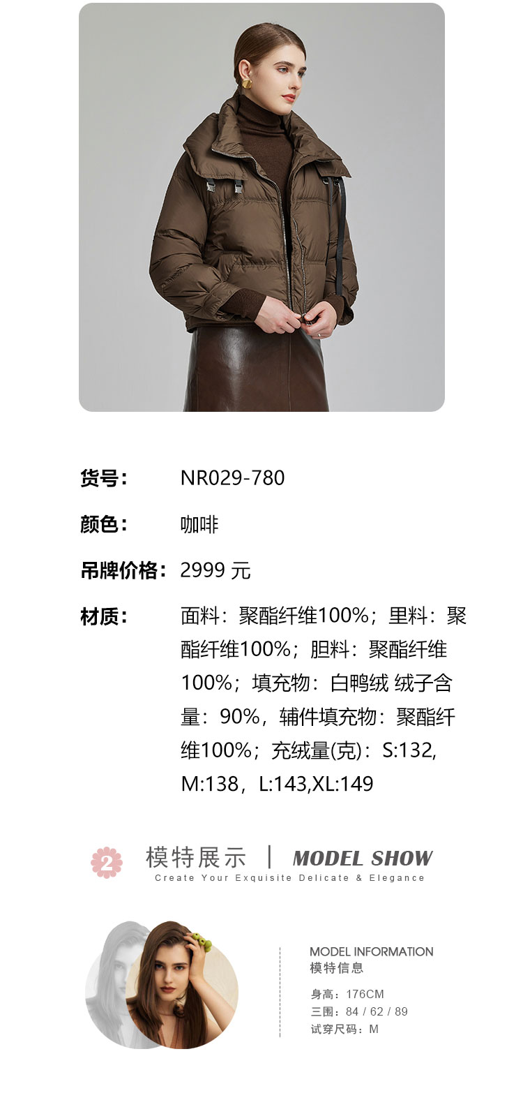 NR029斯尔丽2023冬季新款面包领轻薄白鸭绒短款显高显瘦时尚保暖羽绒服