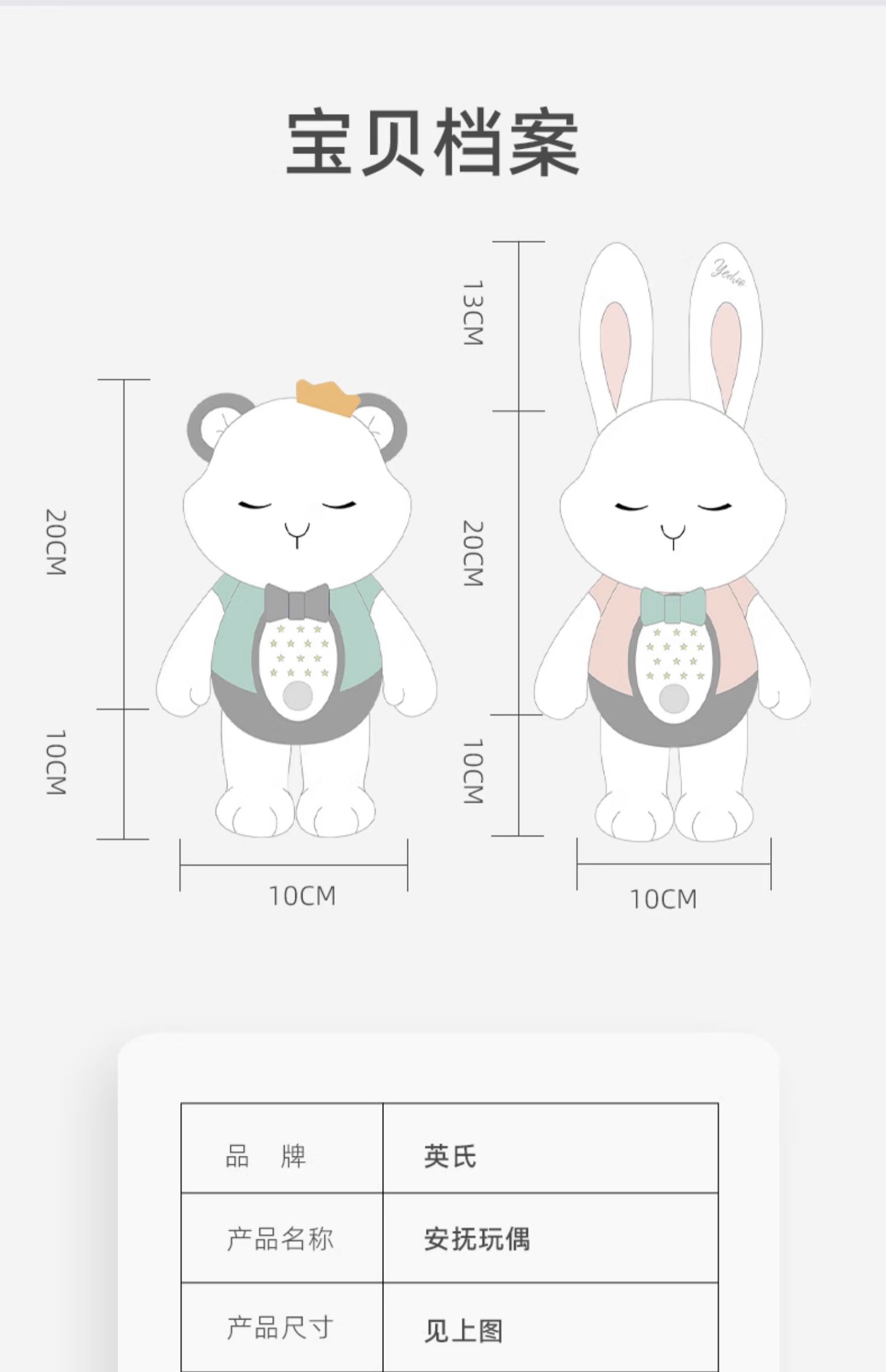 英氏智能安抚玩偶伊芙兔新生儿宝宝睡觉神器自主入睡手偶婴儿哄睡玩具巾6975697870240