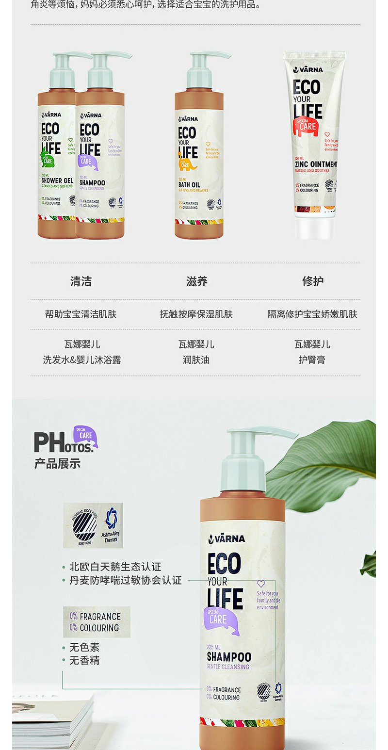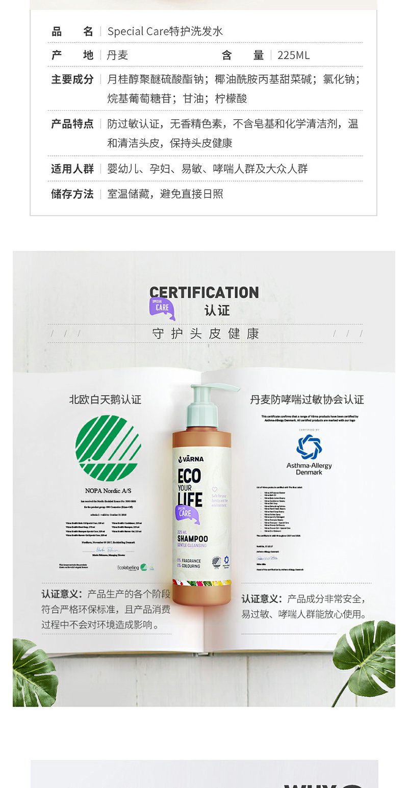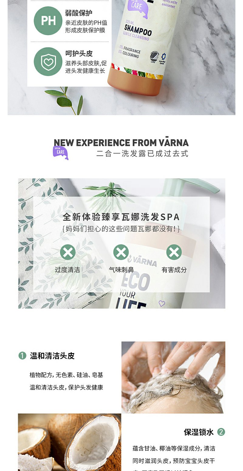 丹麦原装 VARNA/瓦娜 特护系列 洗发露225ml孕妇可用滋润保湿