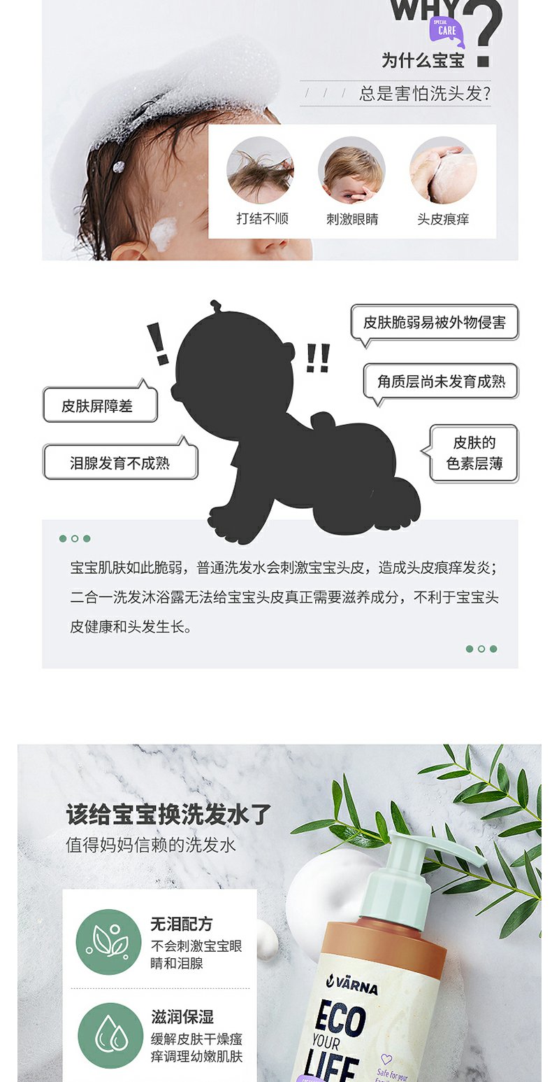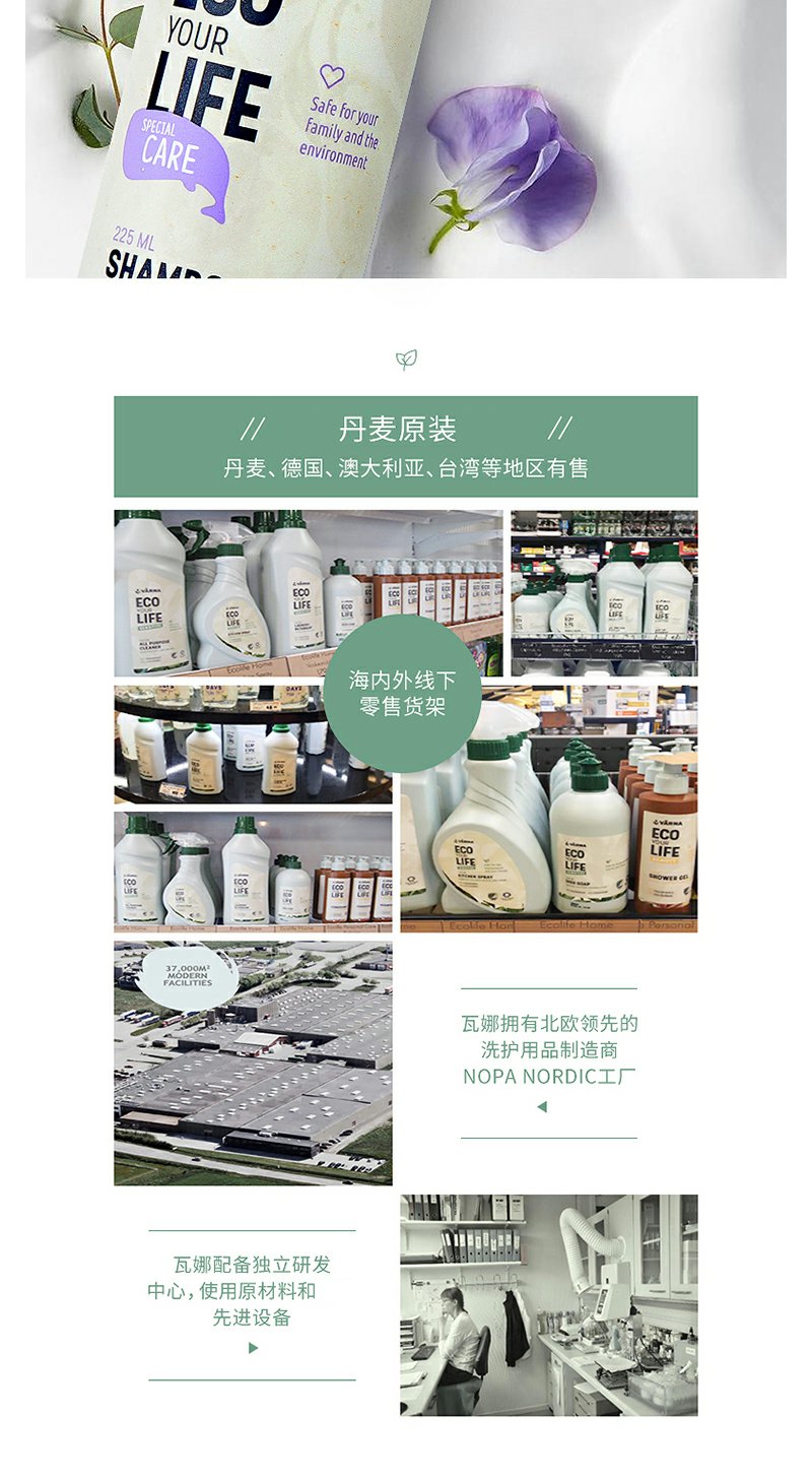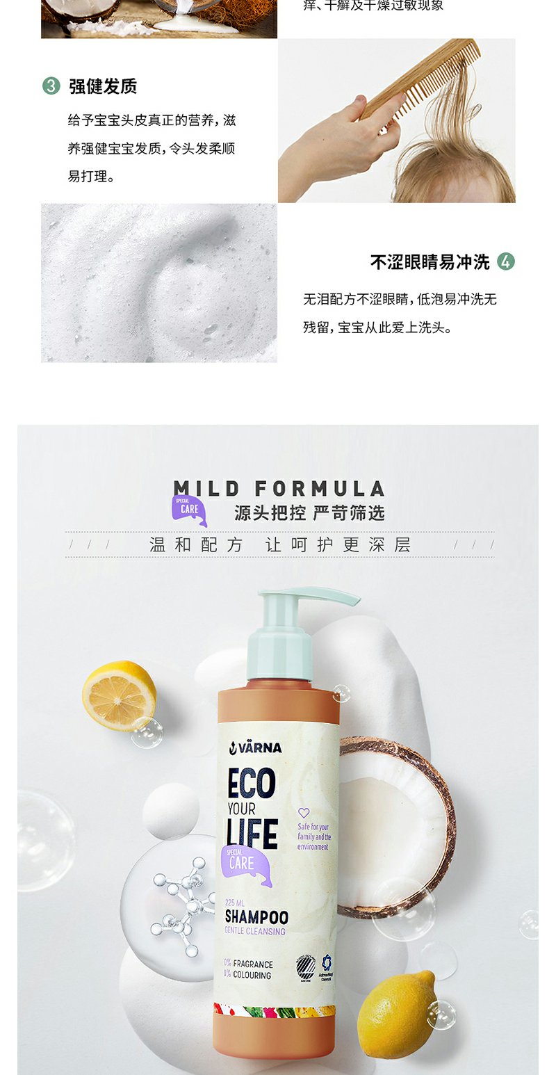 丹麦原装 VARNA/瓦娜 特护系列 洗发露225ml孕妇可用滋润保湿