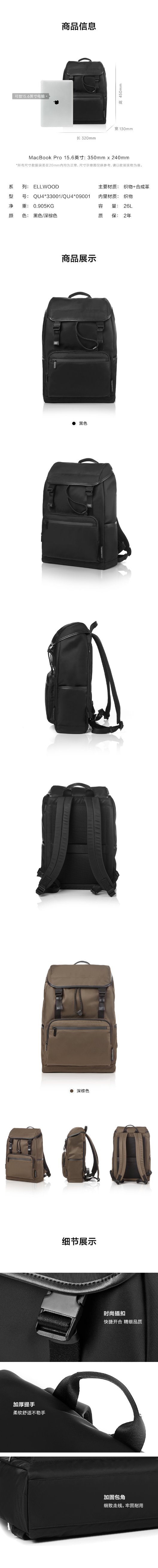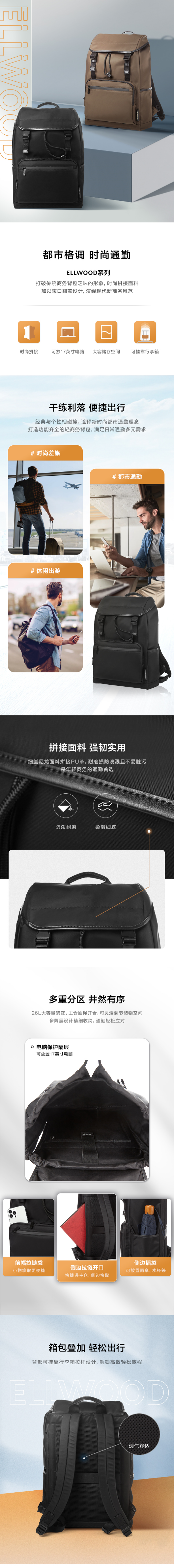 新秀丽ELLWOOD系列商务通勤双肩包QU4*001