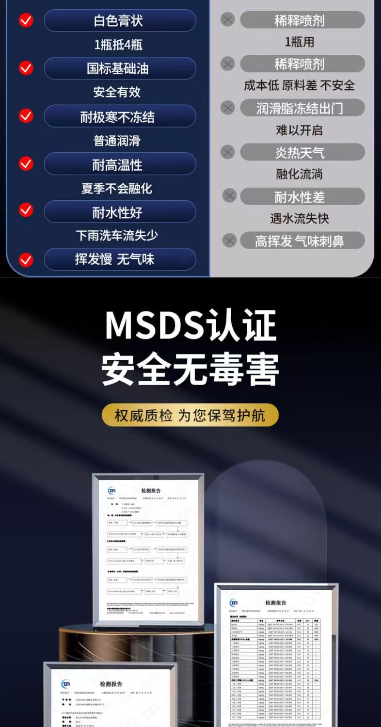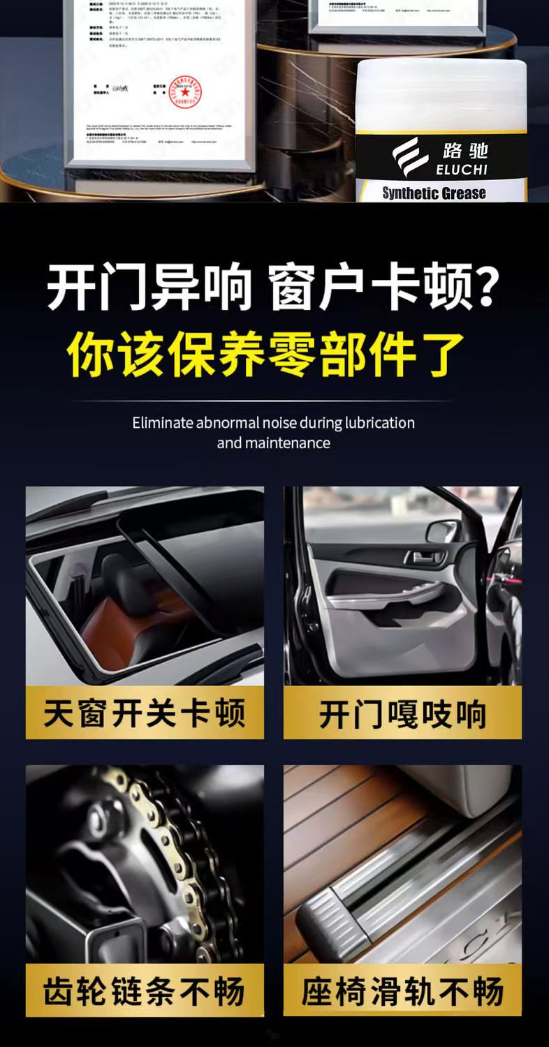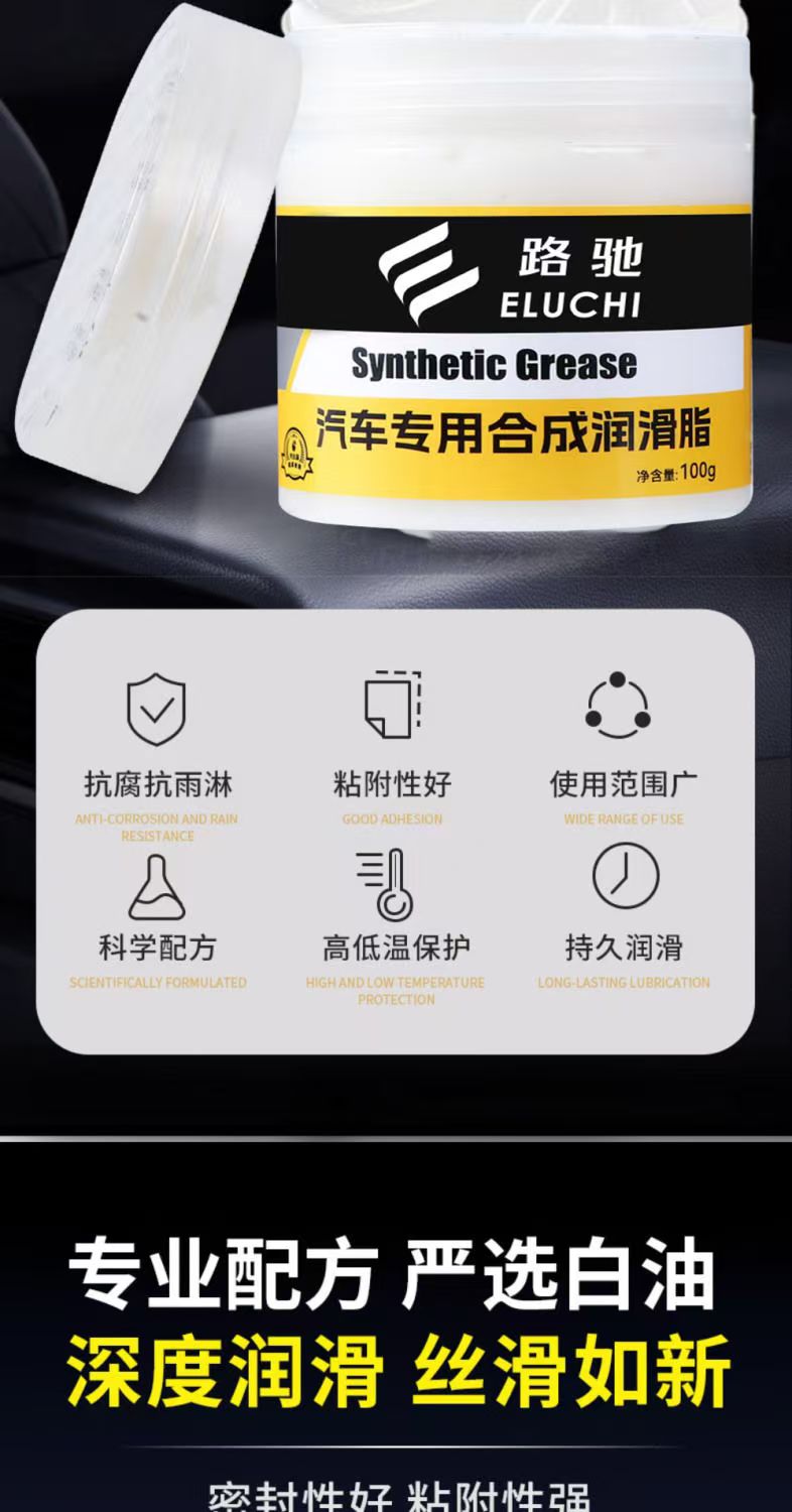 E路驰汽车润滑脂铰链车门天窗限位器滑道异响养护轨道润滑油专用