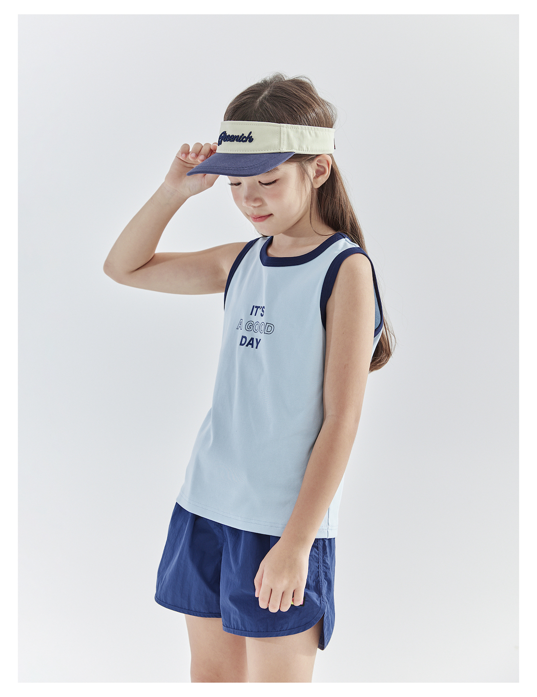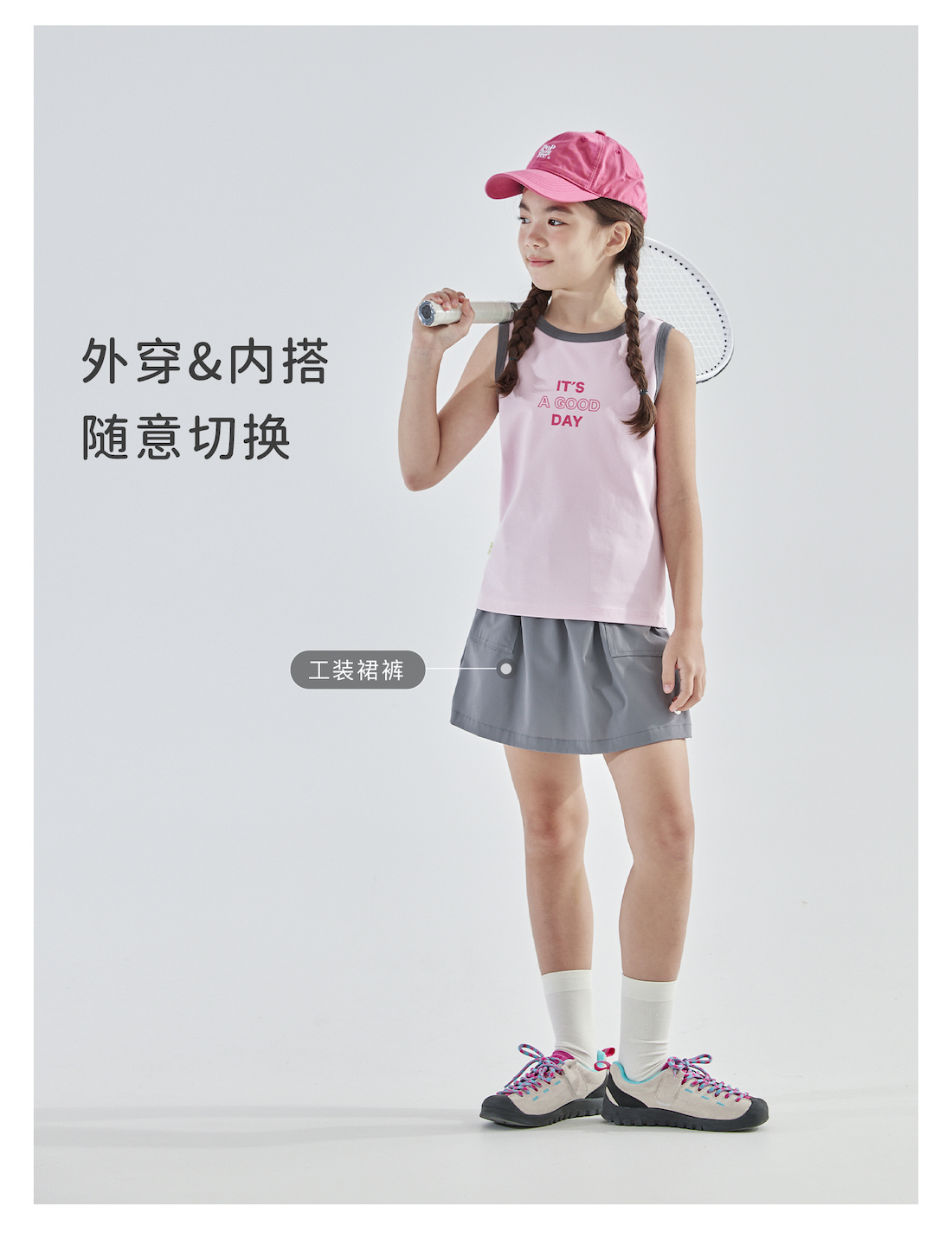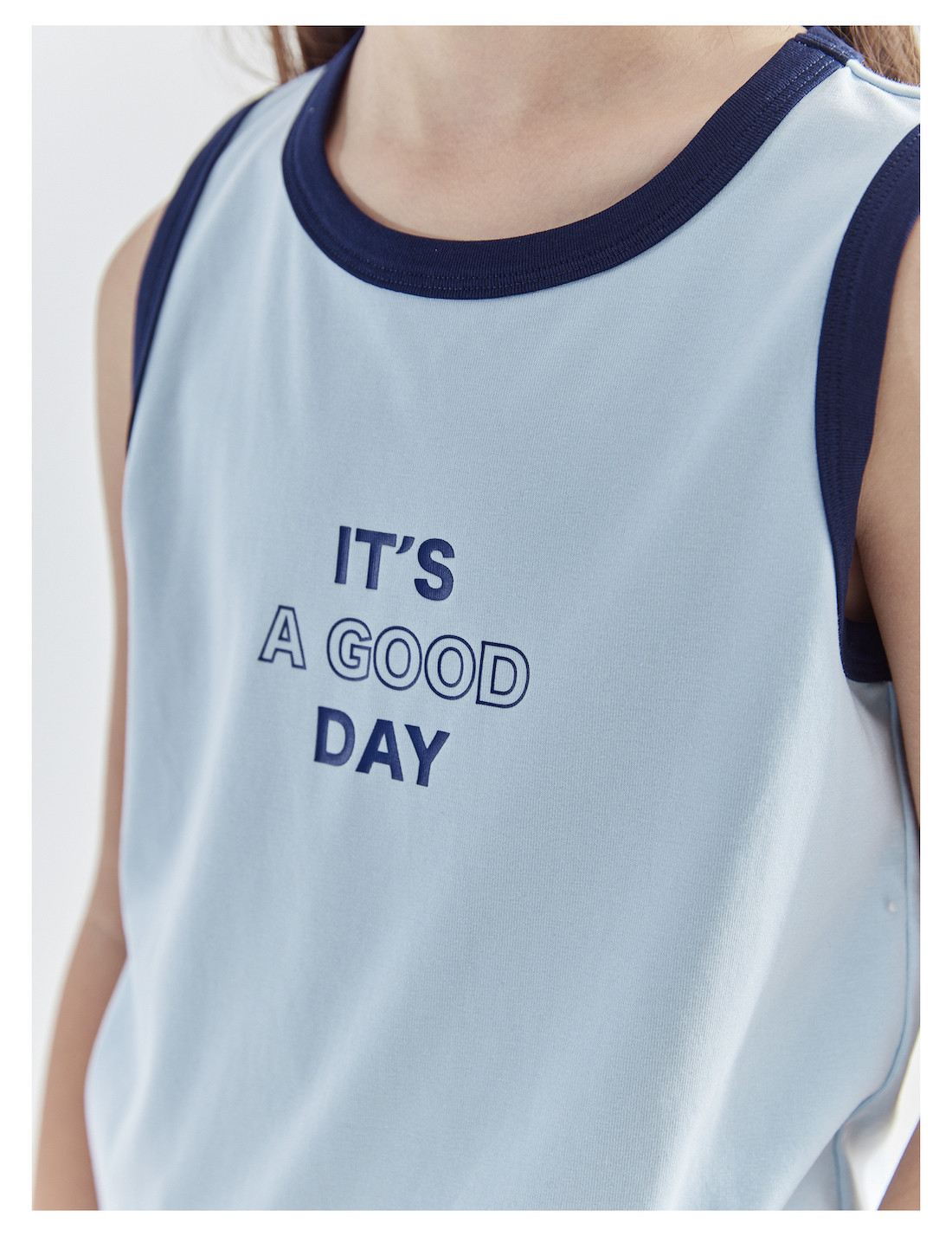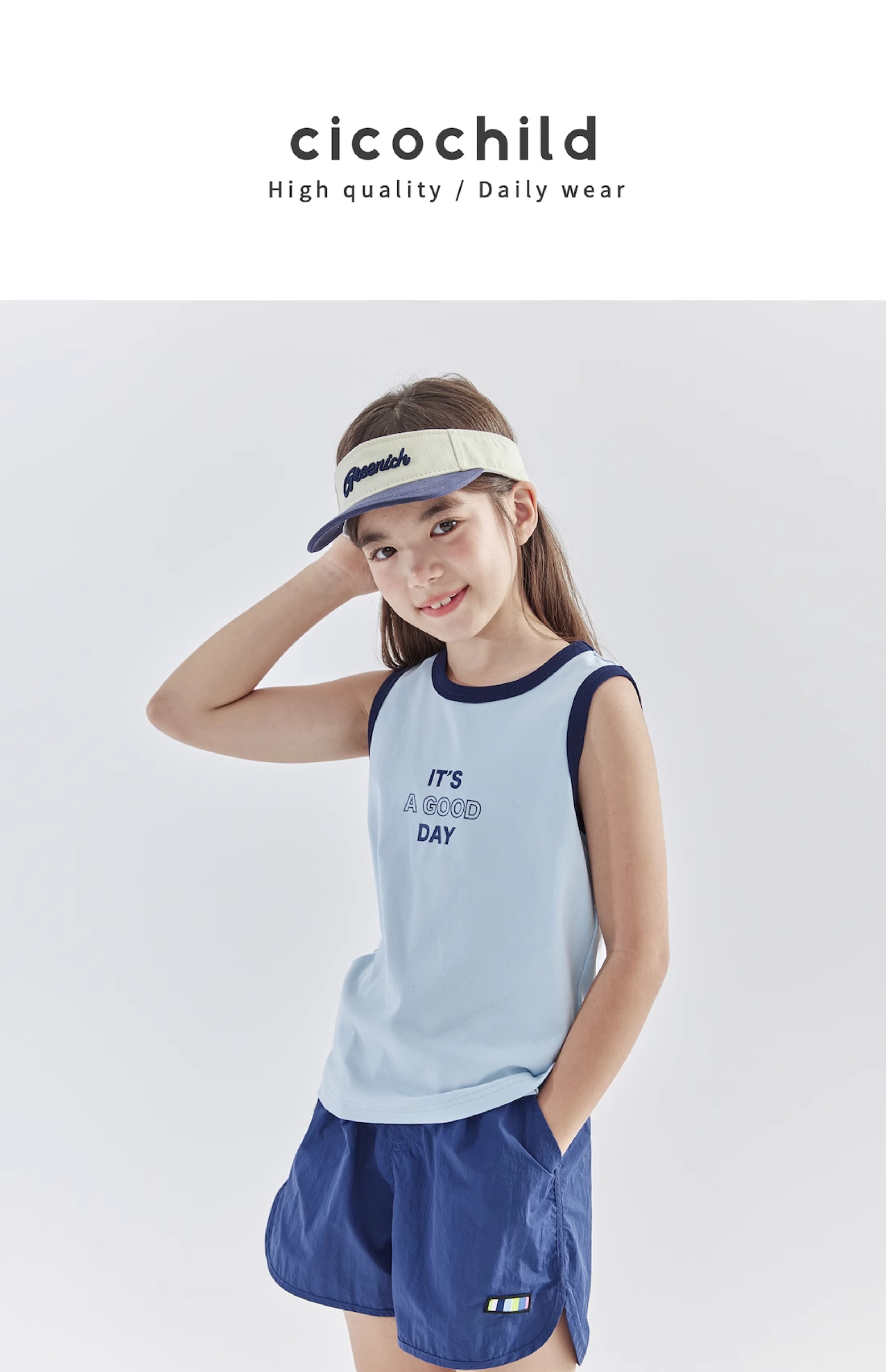 【代发】女童撞色包边背心 cicochild夏款亲子凉感运动T恤上衣无袖浅蓝/浅粉)