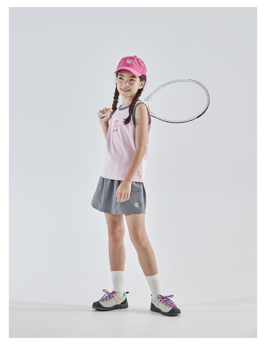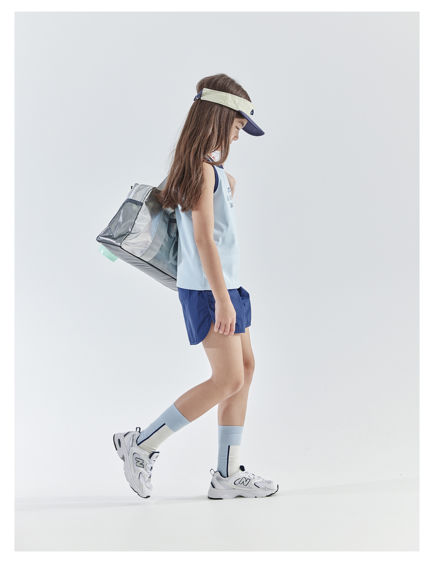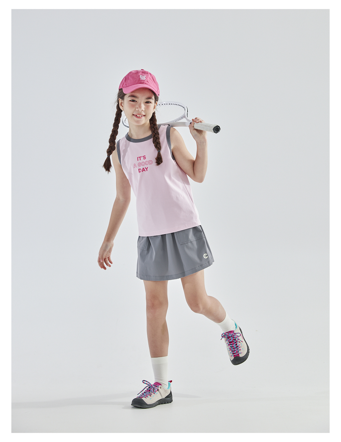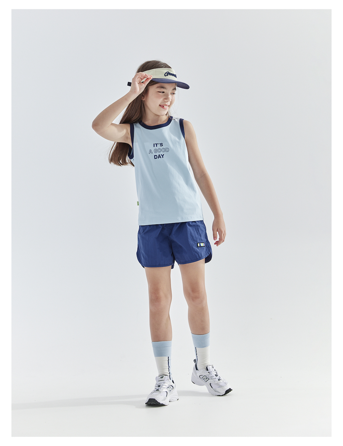 【代发】女童撞色包边背心 cicochild夏款亲子凉感运动T恤上衣无袖浅蓝/浅粉)