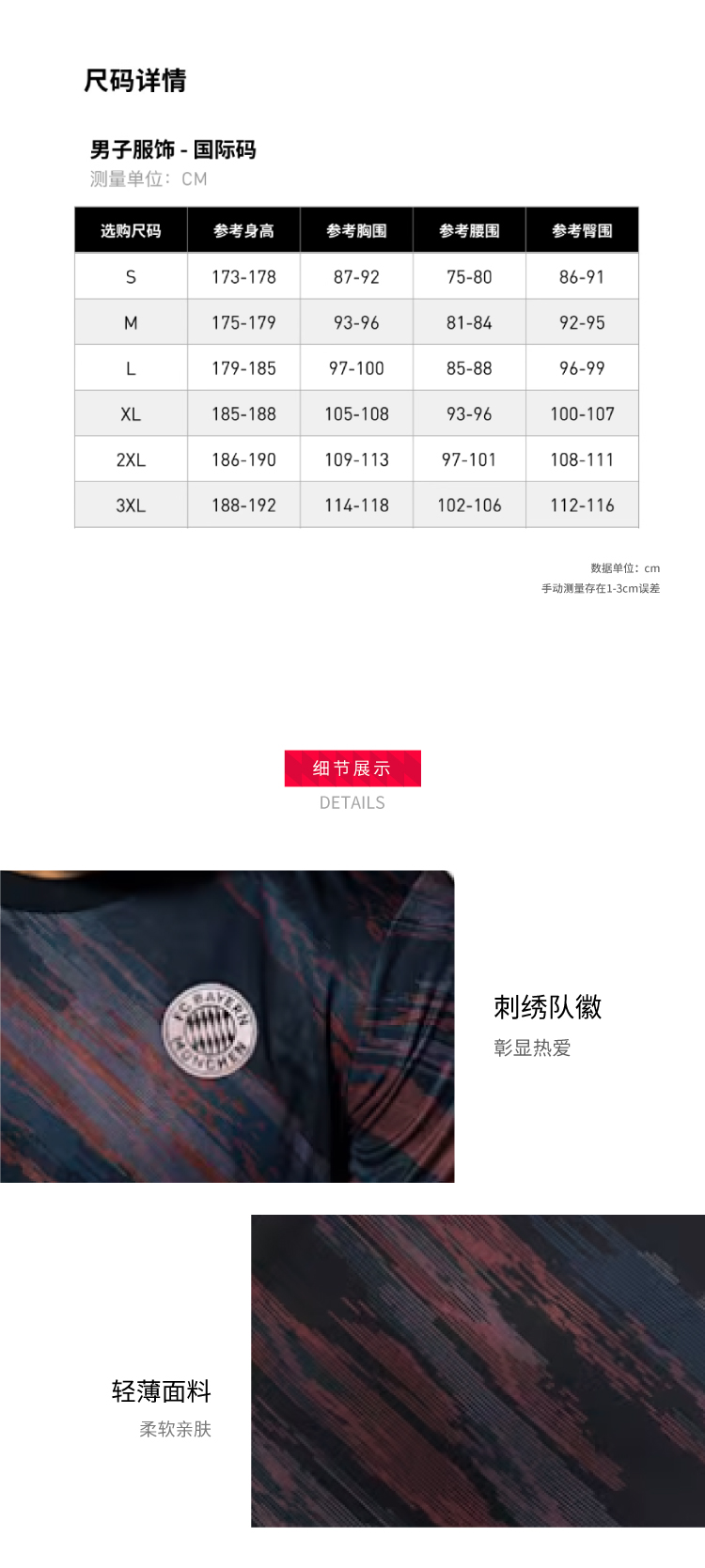 【官网同款】拜仁慕尼黑足球俱乐部丨拜仁黑色25-26客场赛前热身短袖