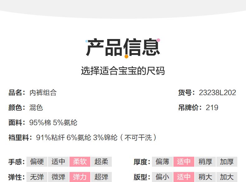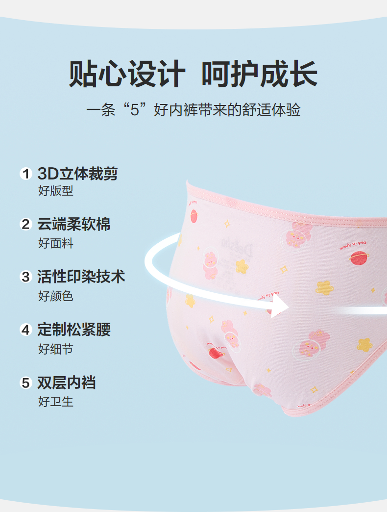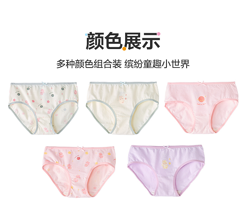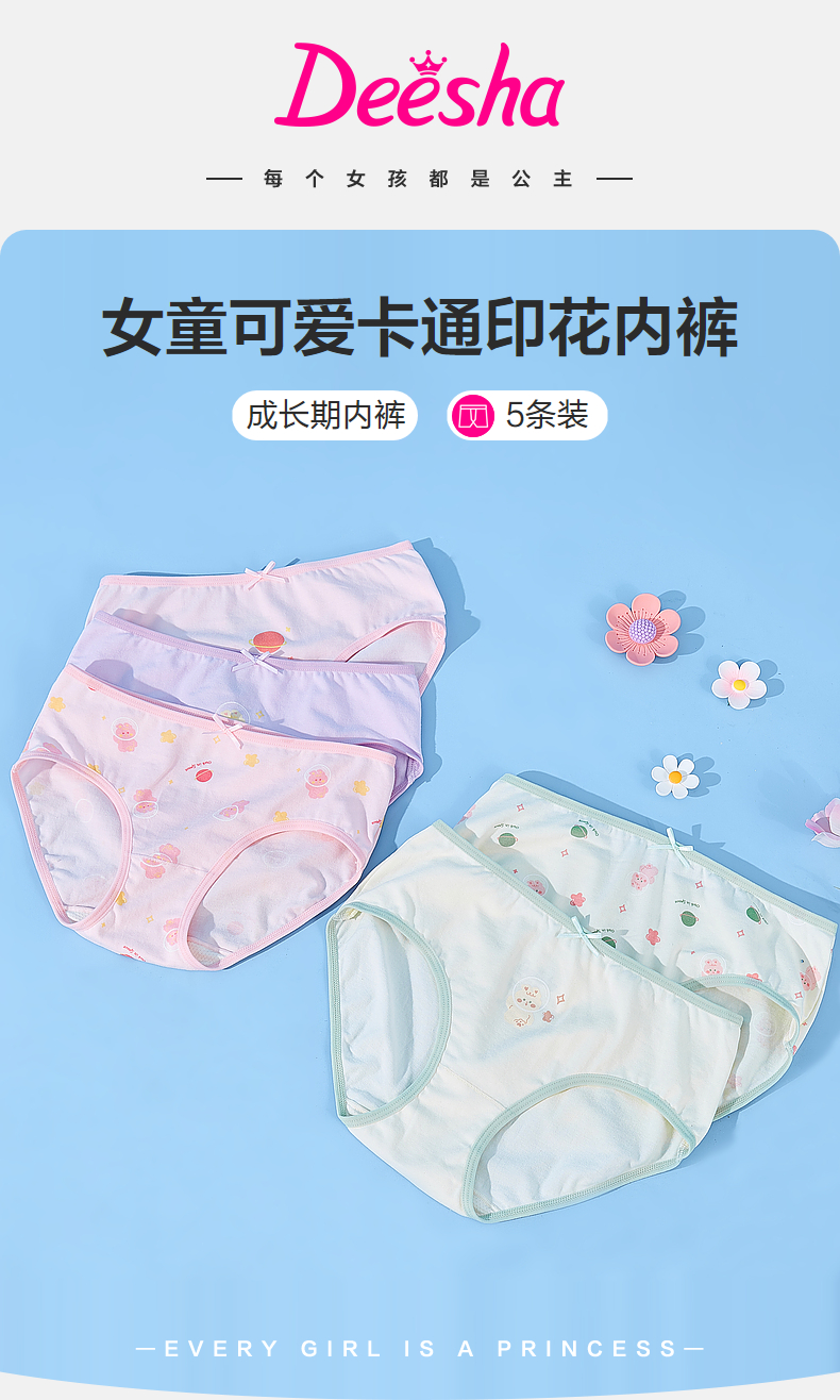 笛莎官方童装女童小内裤2023夏装新款可爱印花三角内裤5条组合装