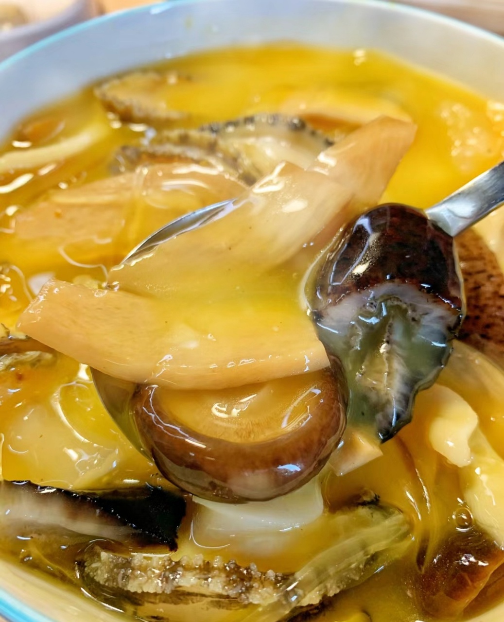 吸附了充裕汤汁,口感爽滑,浓浓的胶质感,真材实