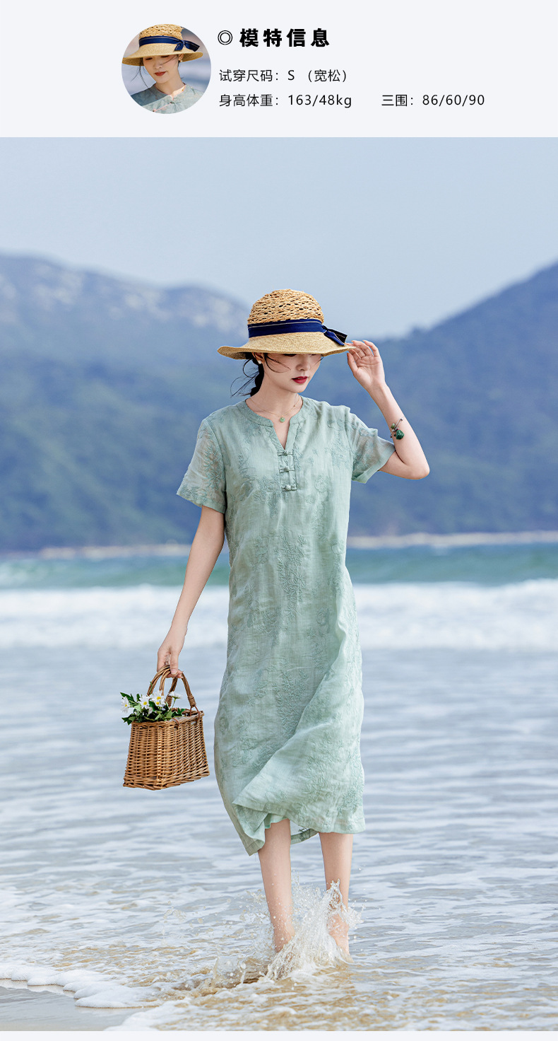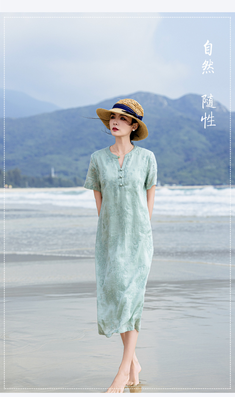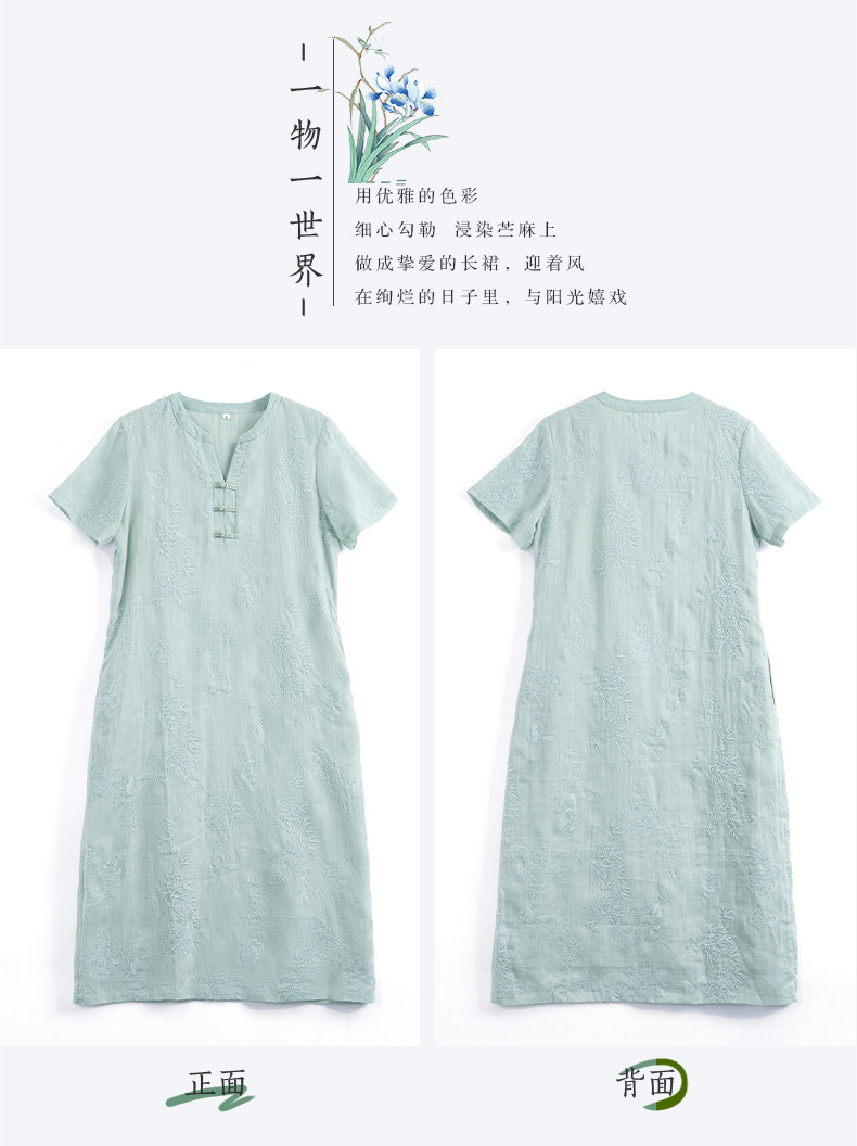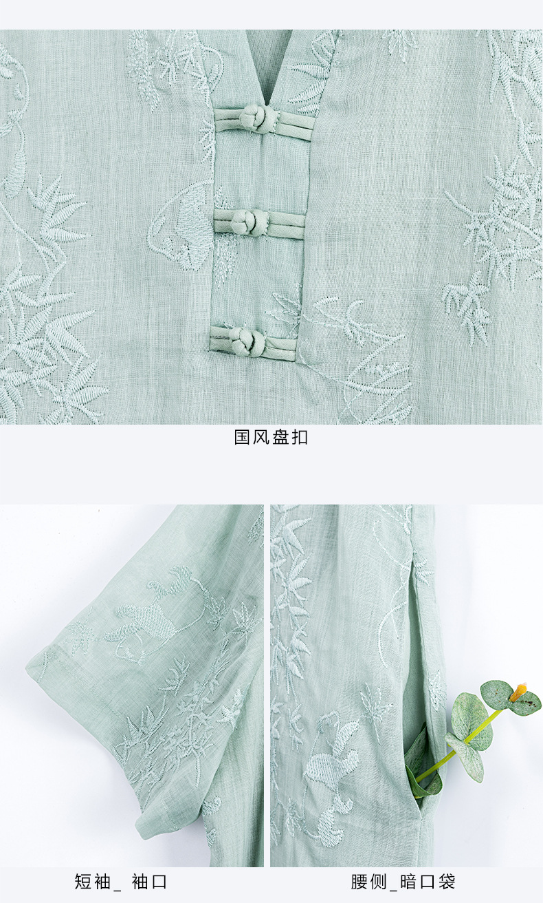 苎麻熊猫竹子,重工刺绣盘扣茶服连衣裙YM-S498
