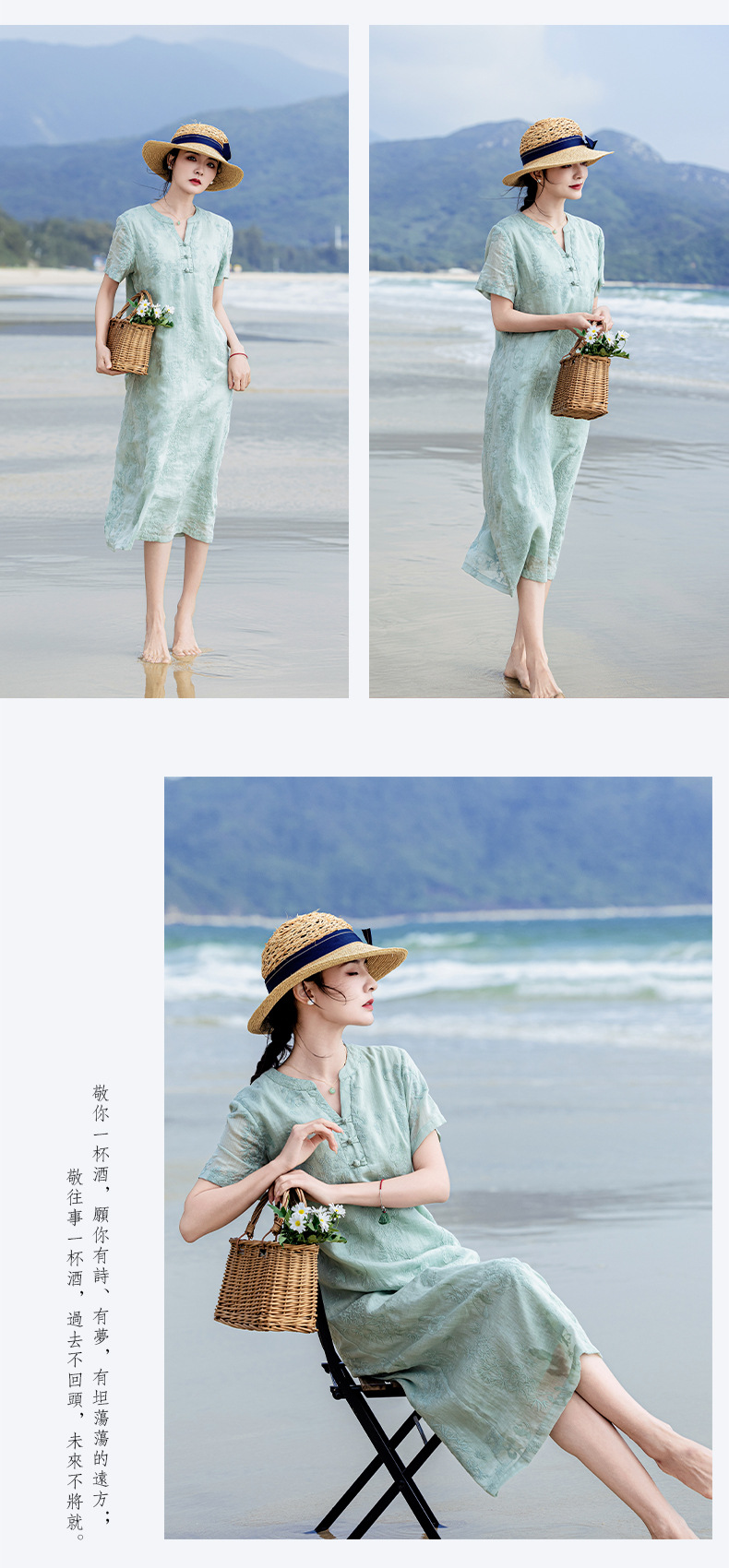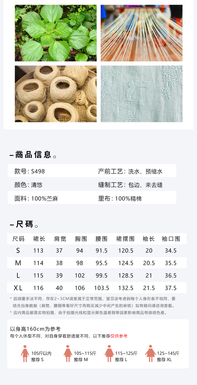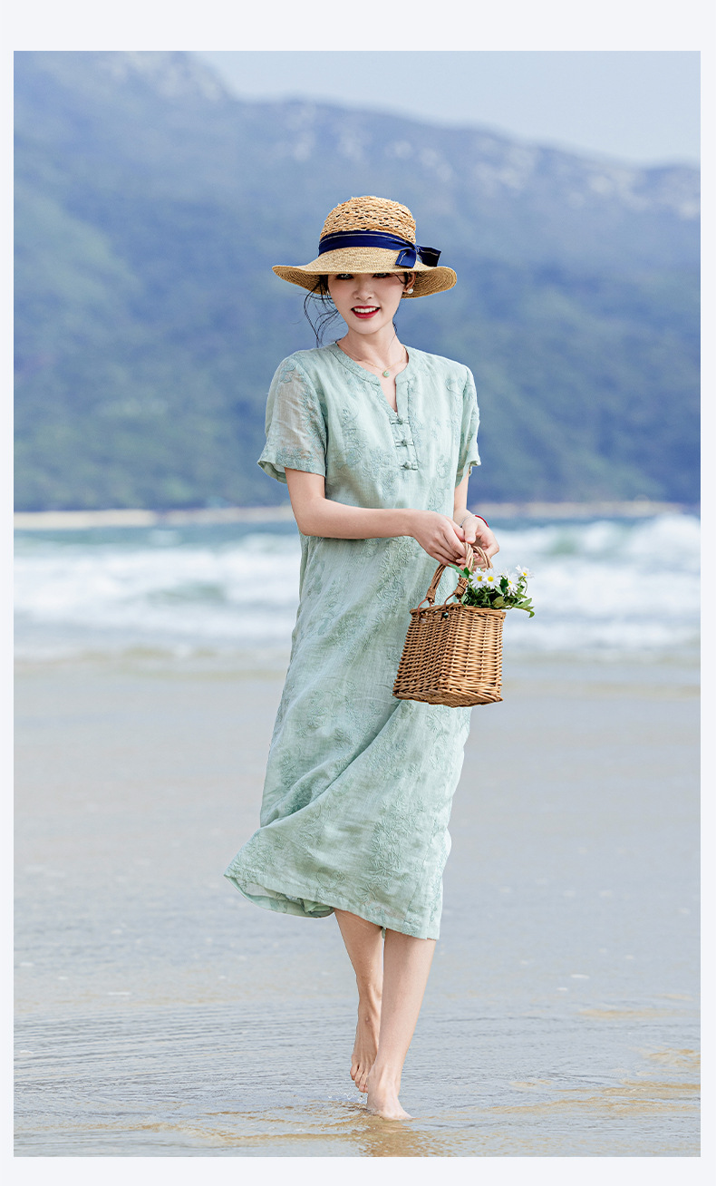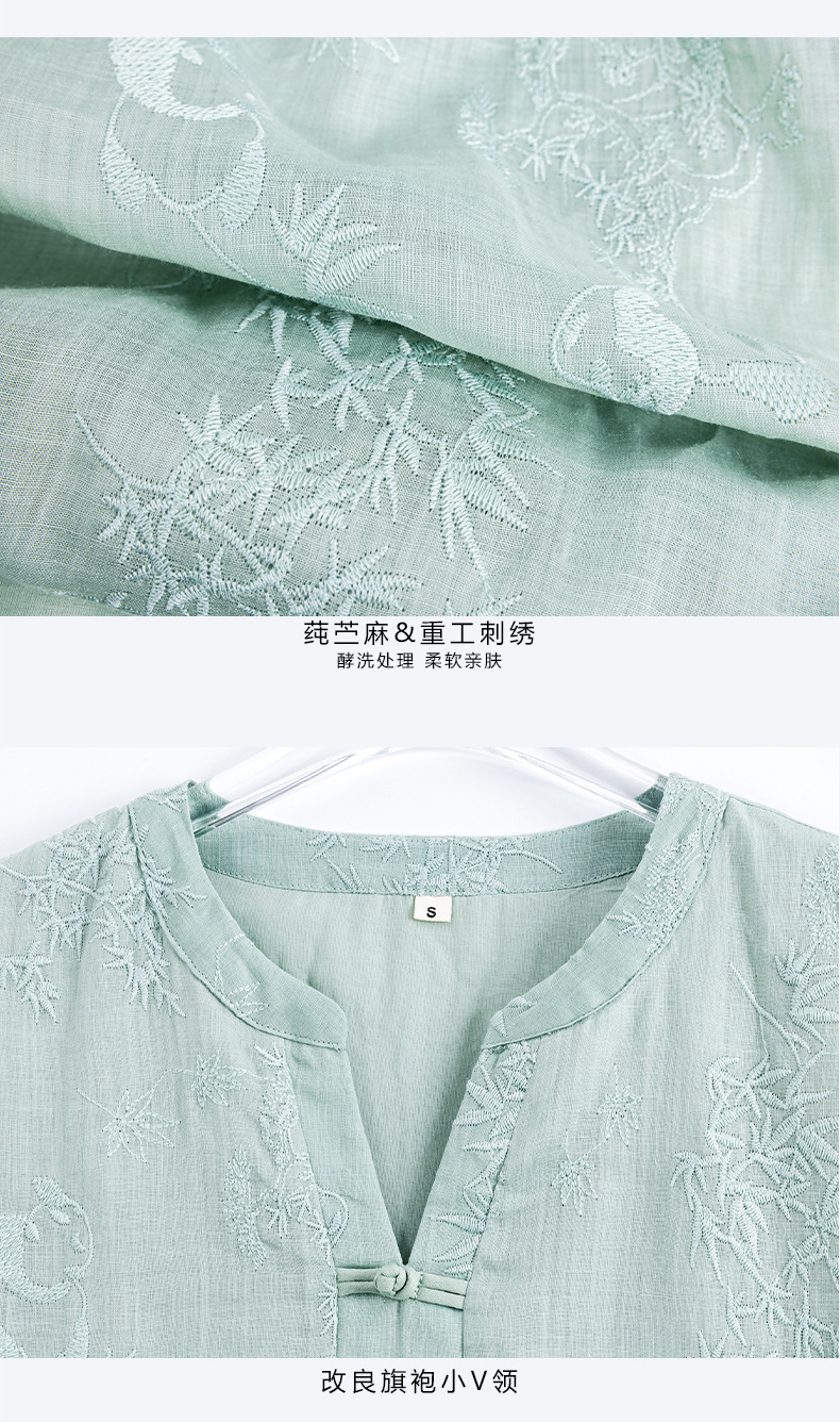 苎麻熊猫竹子,重工刺绣盘扣茶服连衣裙YM-S498