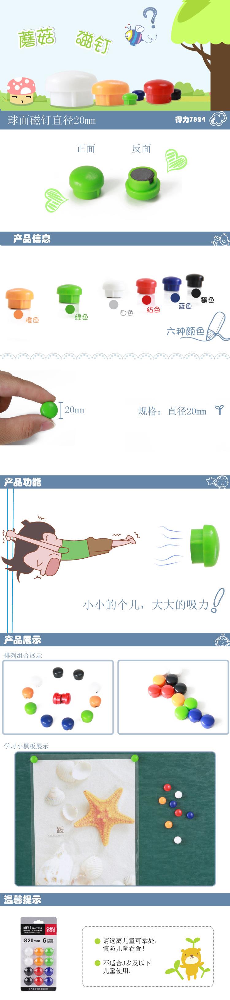 得力文具 deli 7824 磁钉 白板磁力 固定磁扣 磁铁 20mm 12个/包