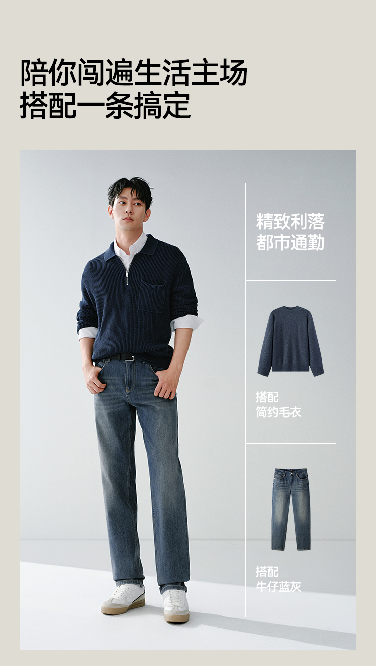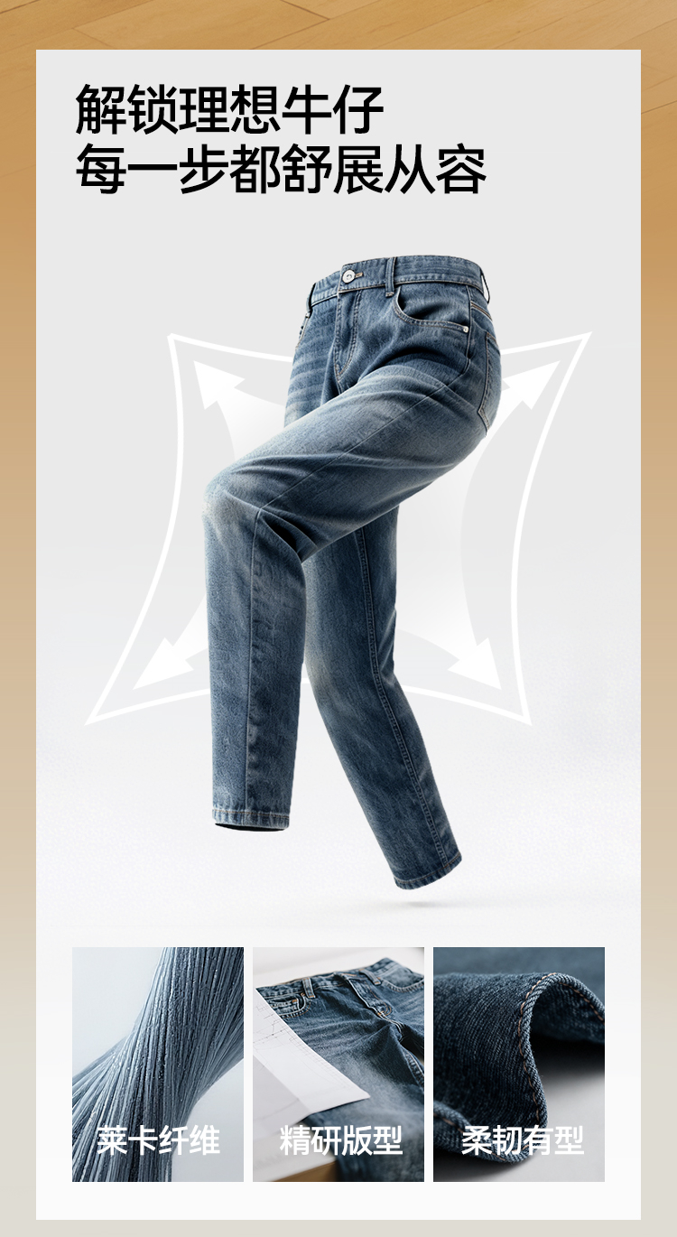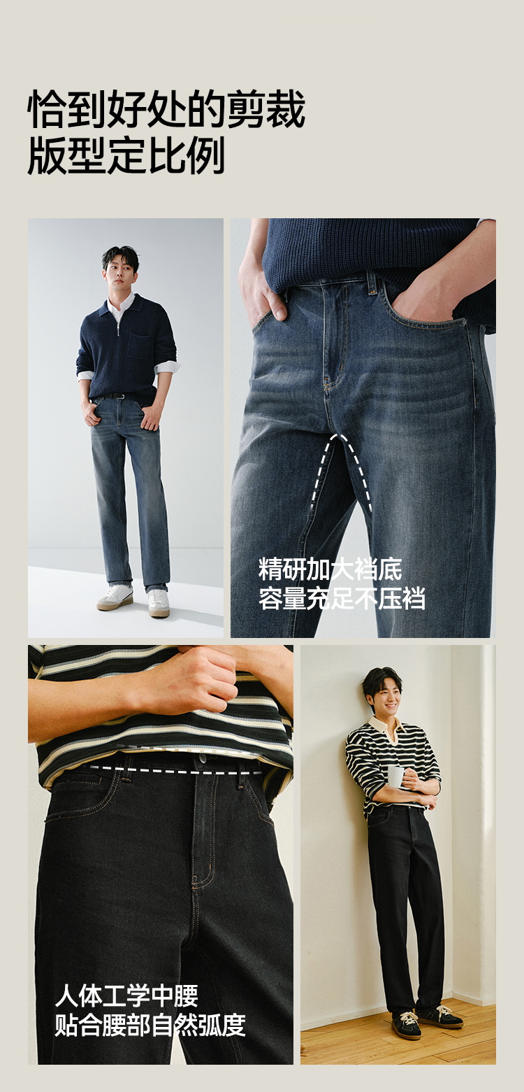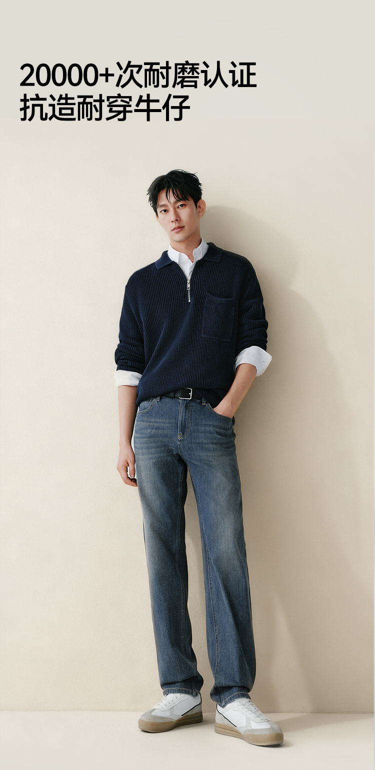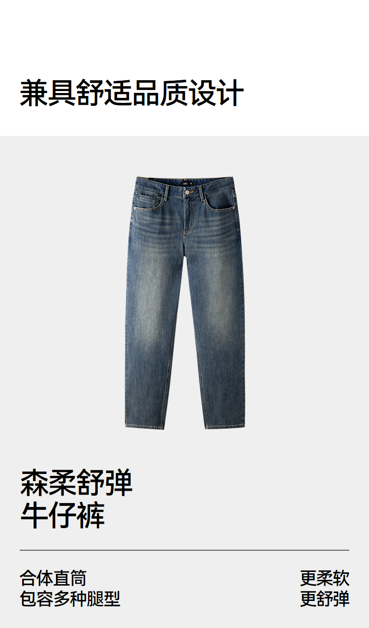 森柔牛仔|森马牛仔裤男舒弹合体直筒长裤2026春新复古做旧水洗裤