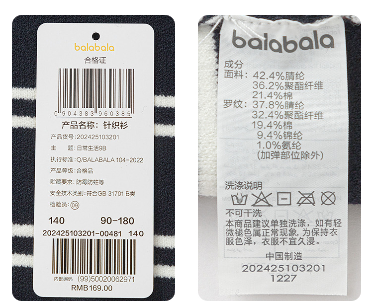 巴拉巴拉童装儿童毛衫男童女童2025新款冬条纹针织衫