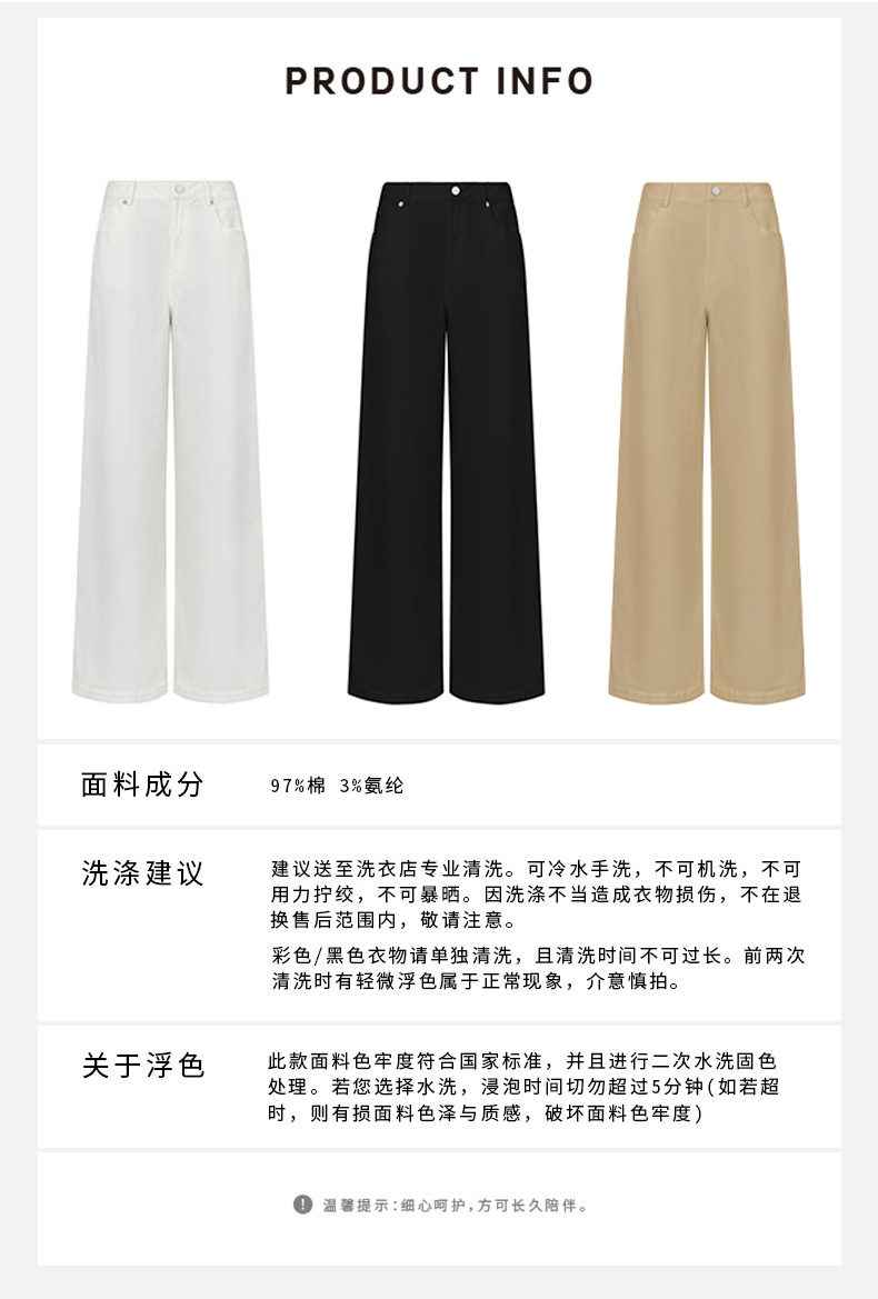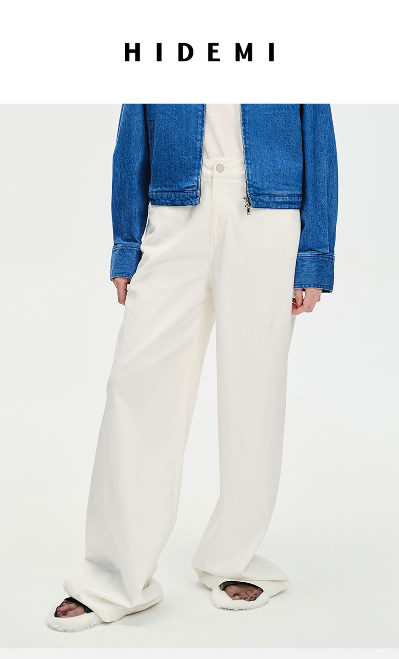 HIDEMI “天王裤”柔软水洗牛仔棉中低腰阔腿牛仔裤 白色/黑色/芝麻色