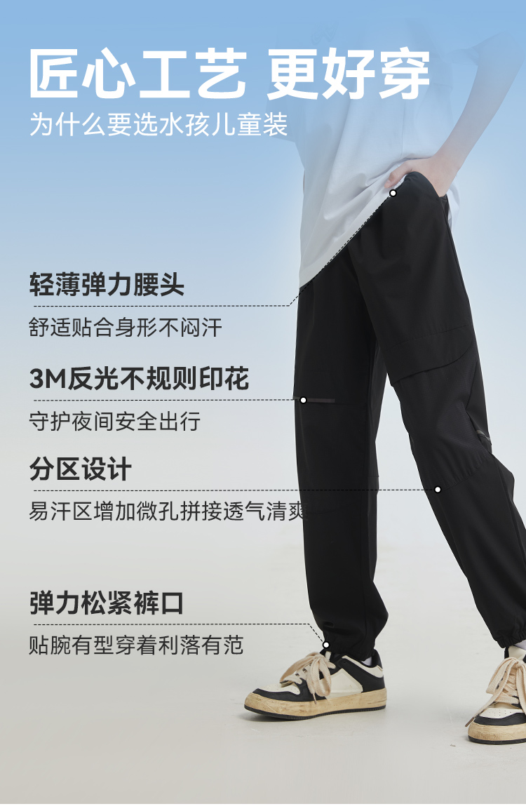 水孩儿童装夏季女童长裤男童裤子户外休闲透气薄款弹力宽松运动裤