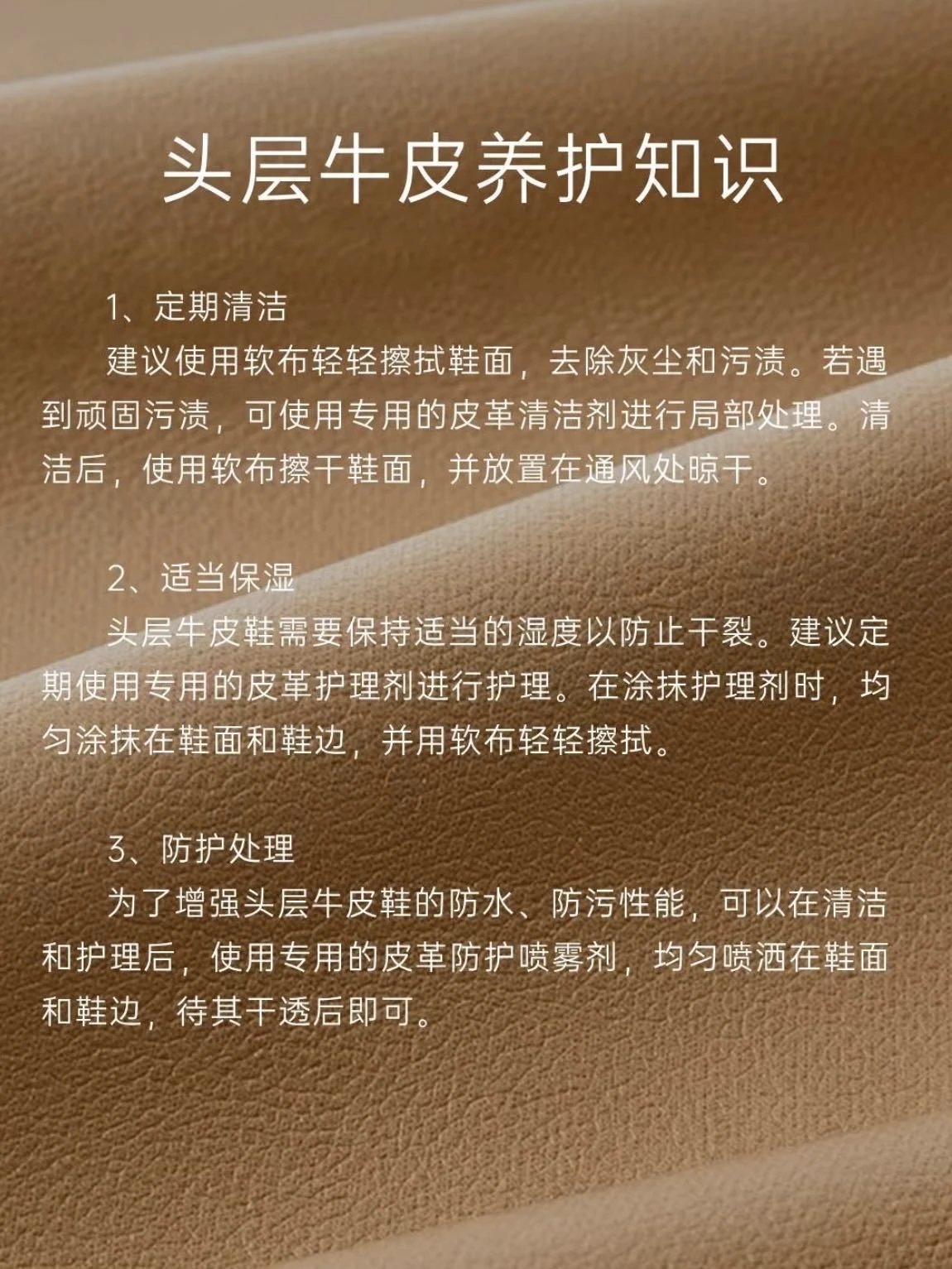 【材质】鞋面:头层牛皮 中底:头层牛皮 大底:牛筋大底
