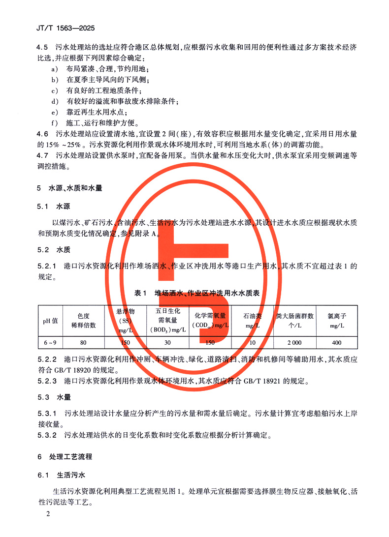 港口污水资源化利用技术要求(JT/T 1563—2025)