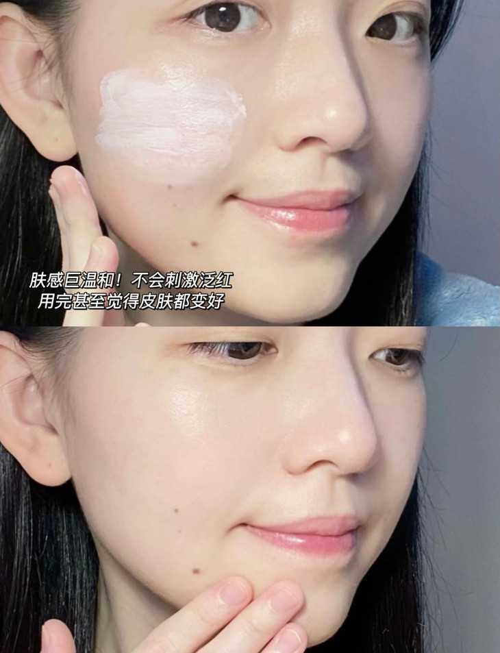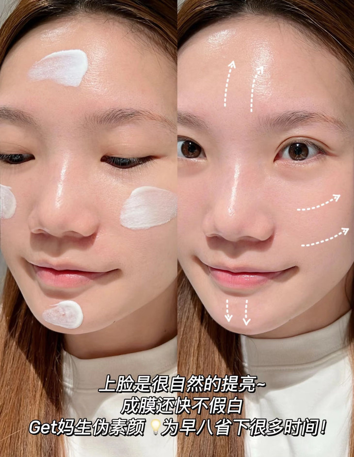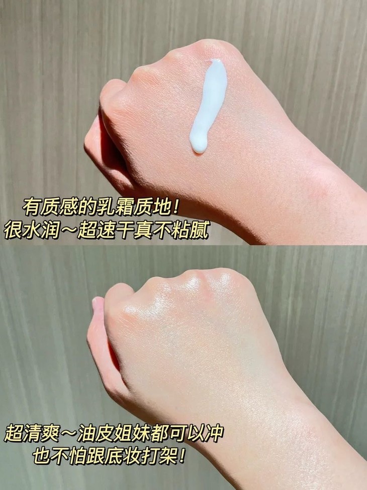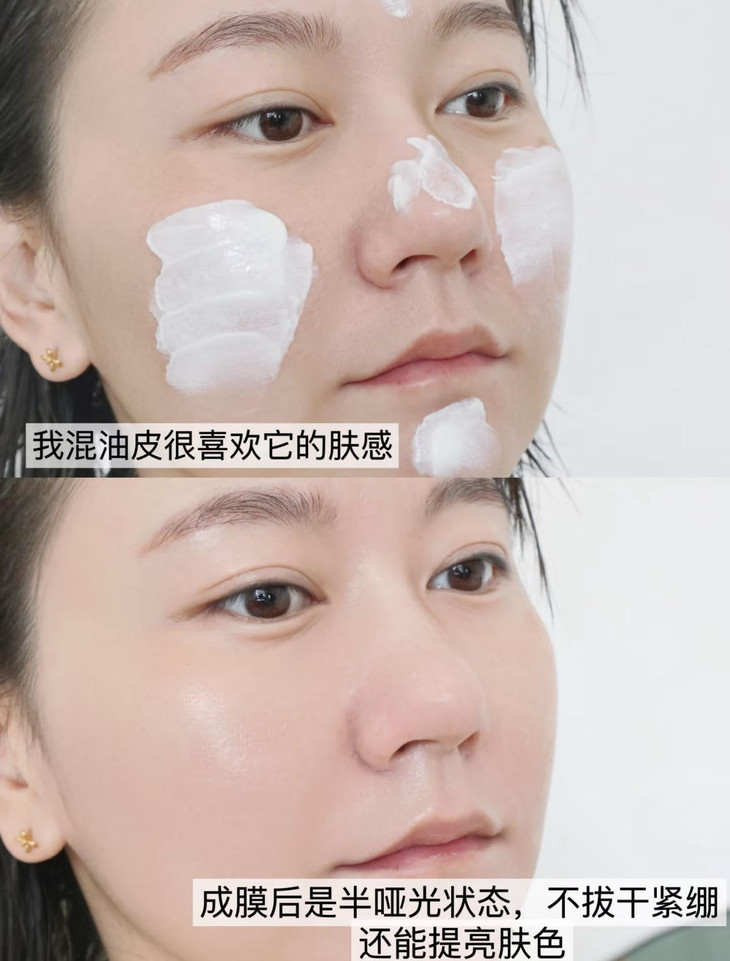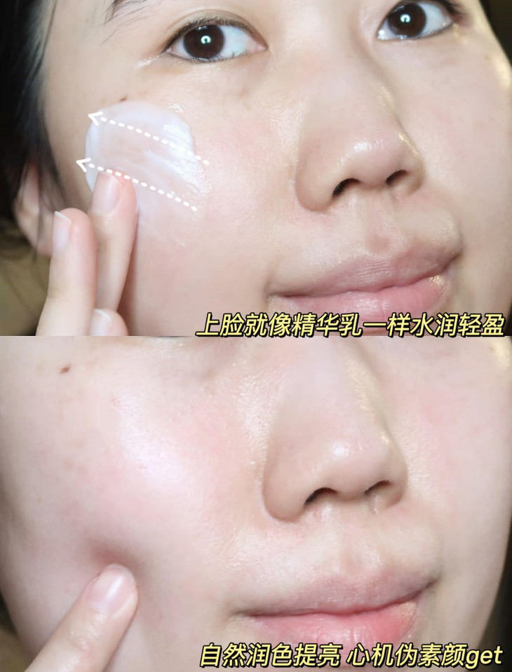 使用对比: 使用完效果看得见! 一抹立马提亮肤色!💥 它是那种奶油一样的质地! 推开就能很快被吸收!很轻薄水润润的! 这款出门前厚抹~整张脸都是清清爽爽滴 不油腻、不堵塞毛孔