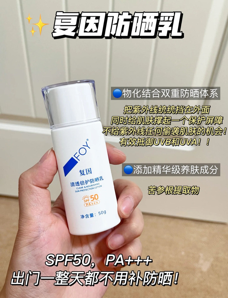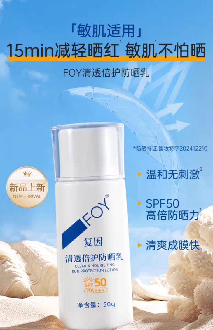 🔥敏感肌防晒天花板🏆【复因清透倍护防晒乳】 限时开团1瓶50g仅需89 SPF50🌞PA+++高倍防护力👊外防内养,修红降温✨ 敏感肌适用 各种肤质放心用 防晒又养肤
