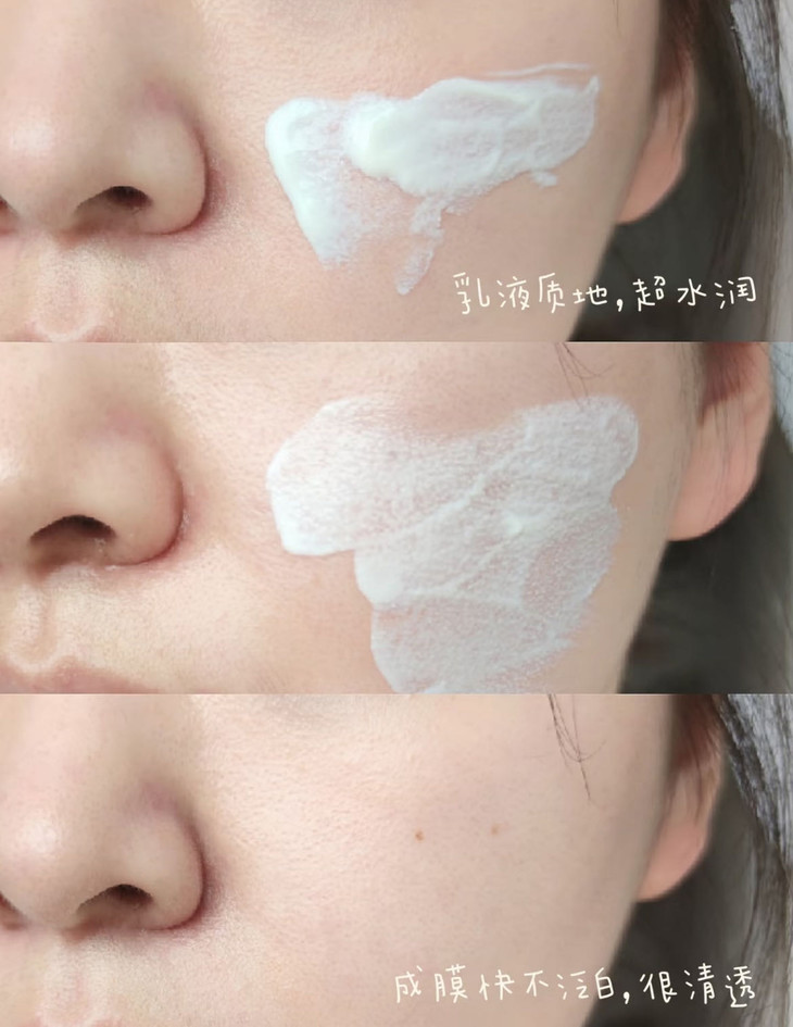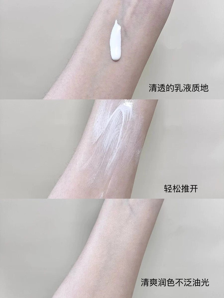 :质地照片 质地像牛奶🥛一样丝滑~ 流动很强!肤感真的很棒! 成膜很快还清爽不油腻! 不用管啥肤质都能用的一支! 都很ok轻薄透气✅ pick它!住!我先囤!