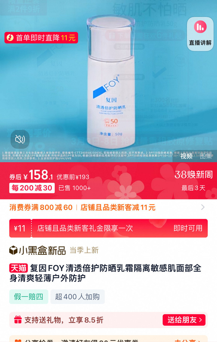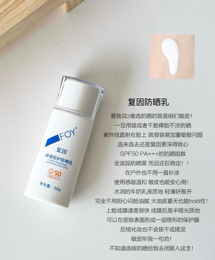 小编综合了市面上其它防晒霜, 在防晒力、优惠力度、使用肤感等方面对比下, 精心挑选出了这款复因的防晒乳! 主打就是一个性价比! ✨物化结合,双重防护,深层抵抗UVA紫外线伤害 ✨SPF50+,PA+++,长达12h➕防晒伤防晒老 ✨敏感肌专研,外防内养,修红降温 ✨质地牛奶般丝滑,流动性强,肤感很清爽 ✨轻薄透气,0负担0油基底,快速成膜,顺滑易推开