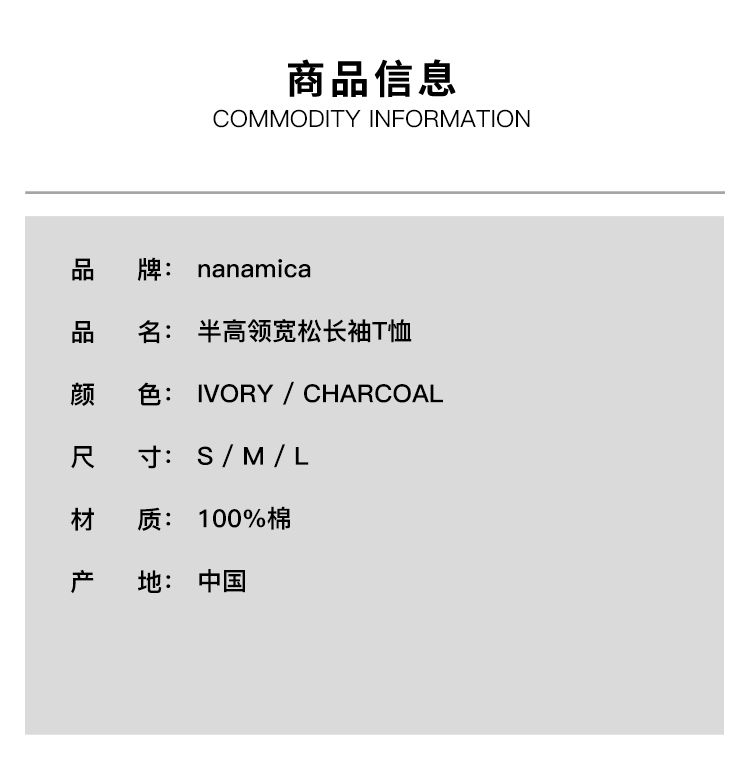 nanamica OOAL Mock Neck L/S Tee 有机棉半高领宽松长袖T恤