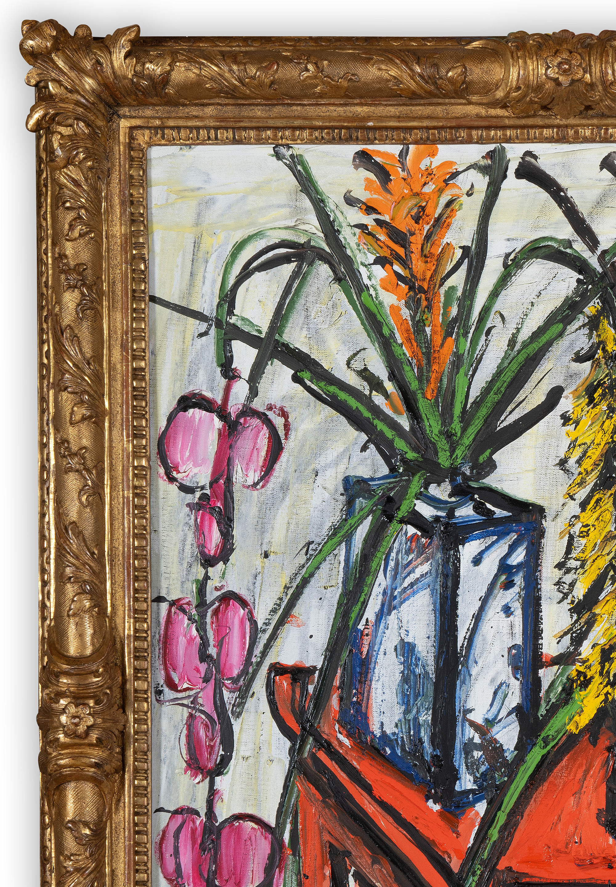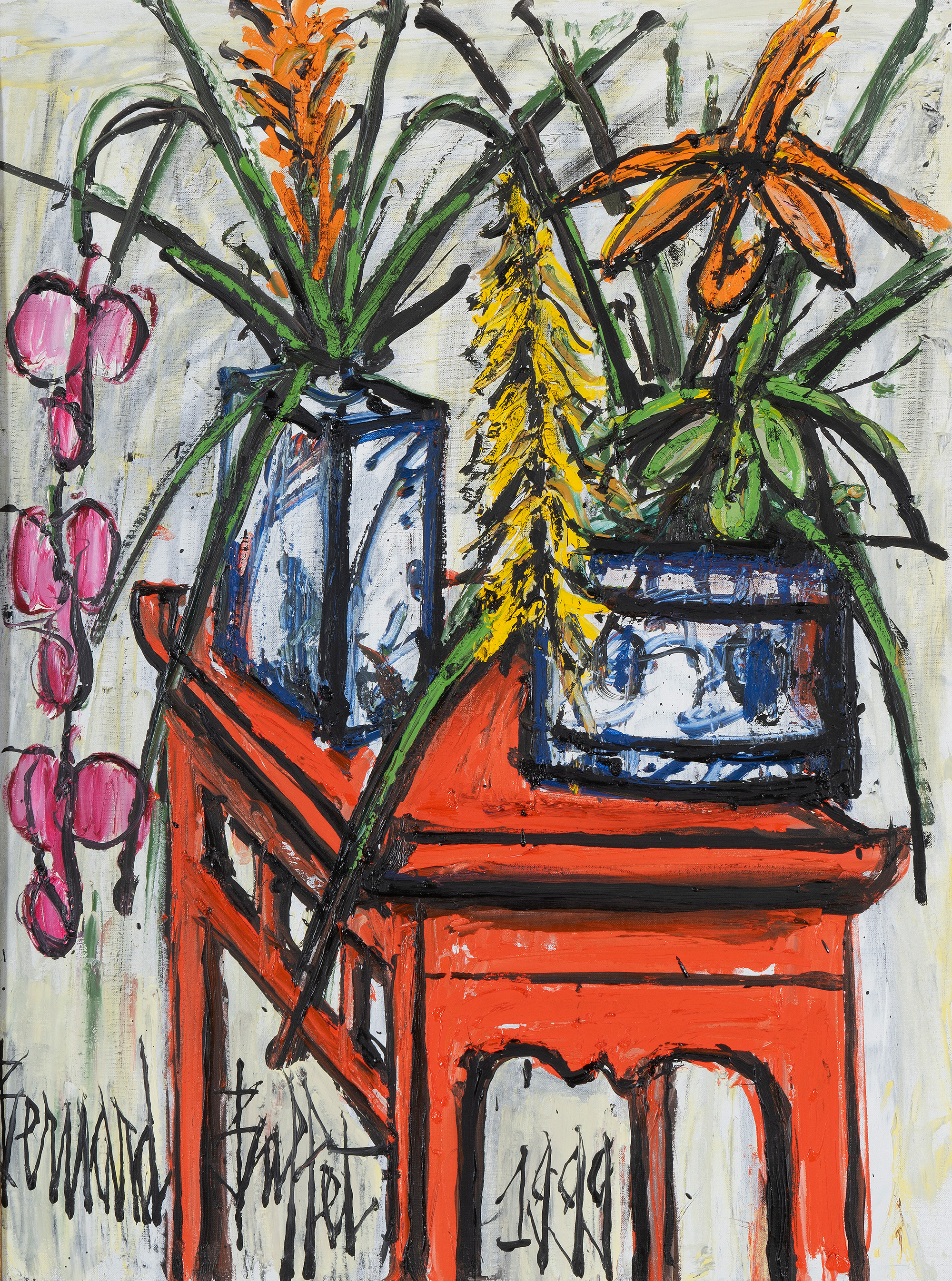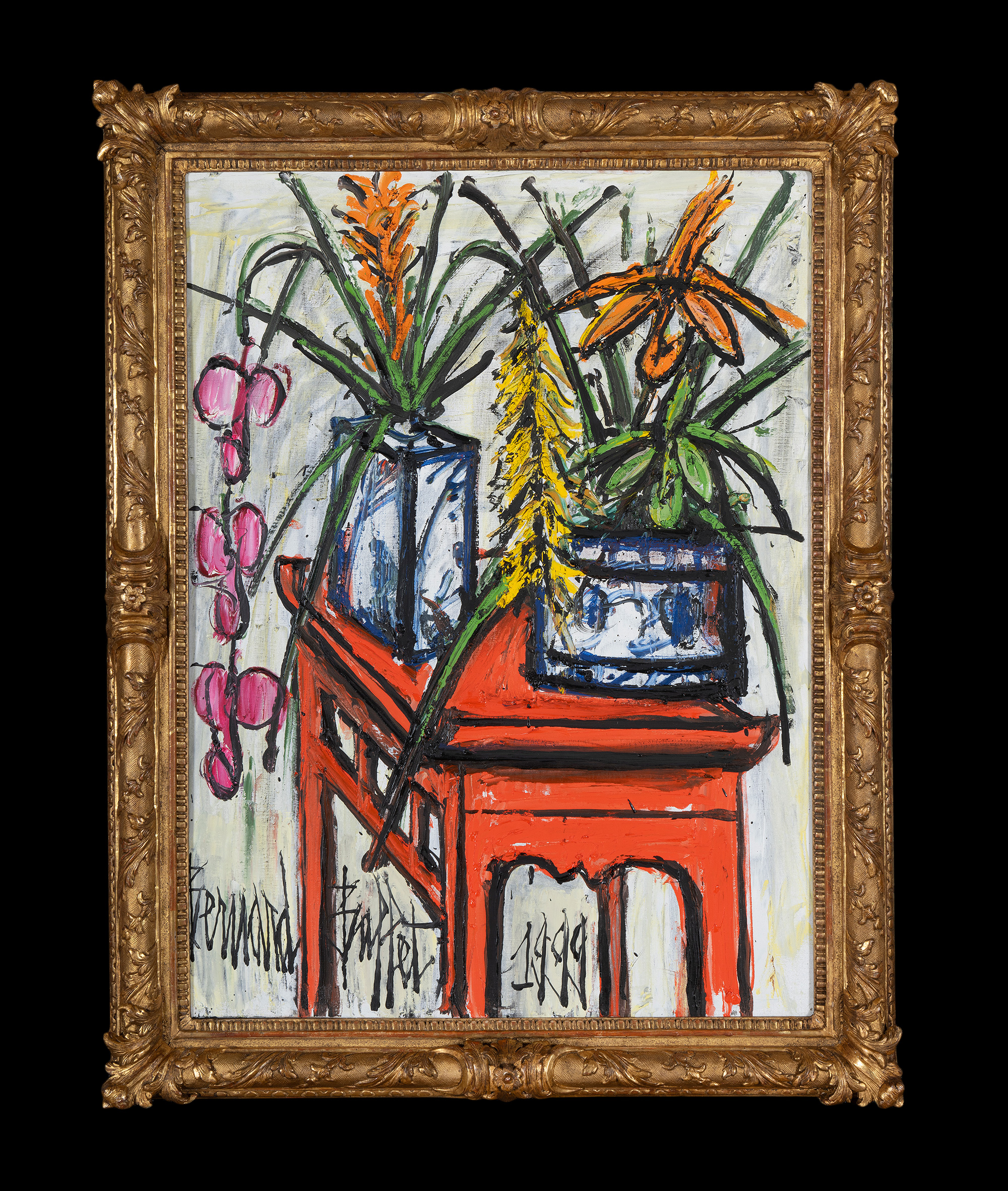 1999年法国具象派大师Bernard Buffet签名创作布面油画《中式桌上的花卉》