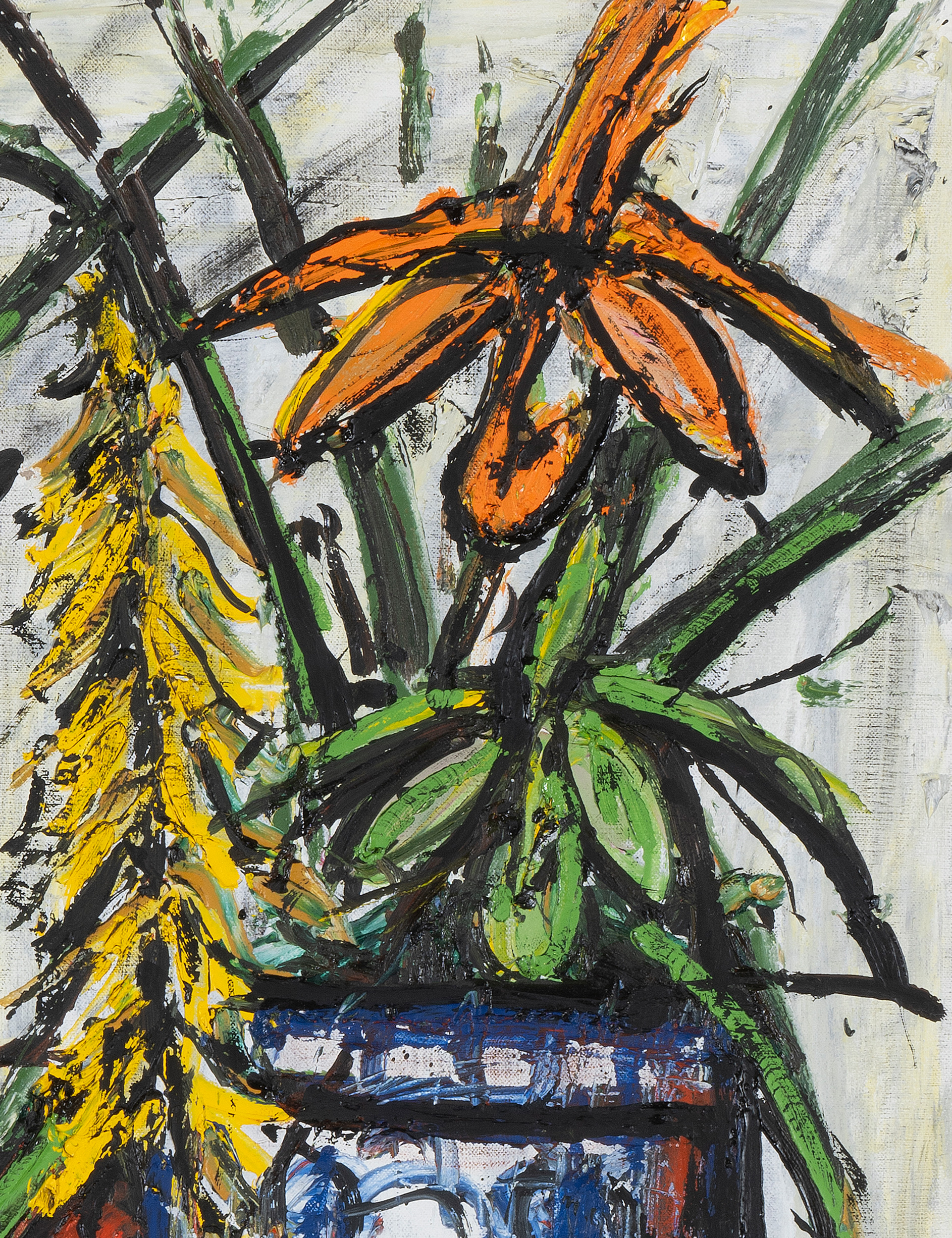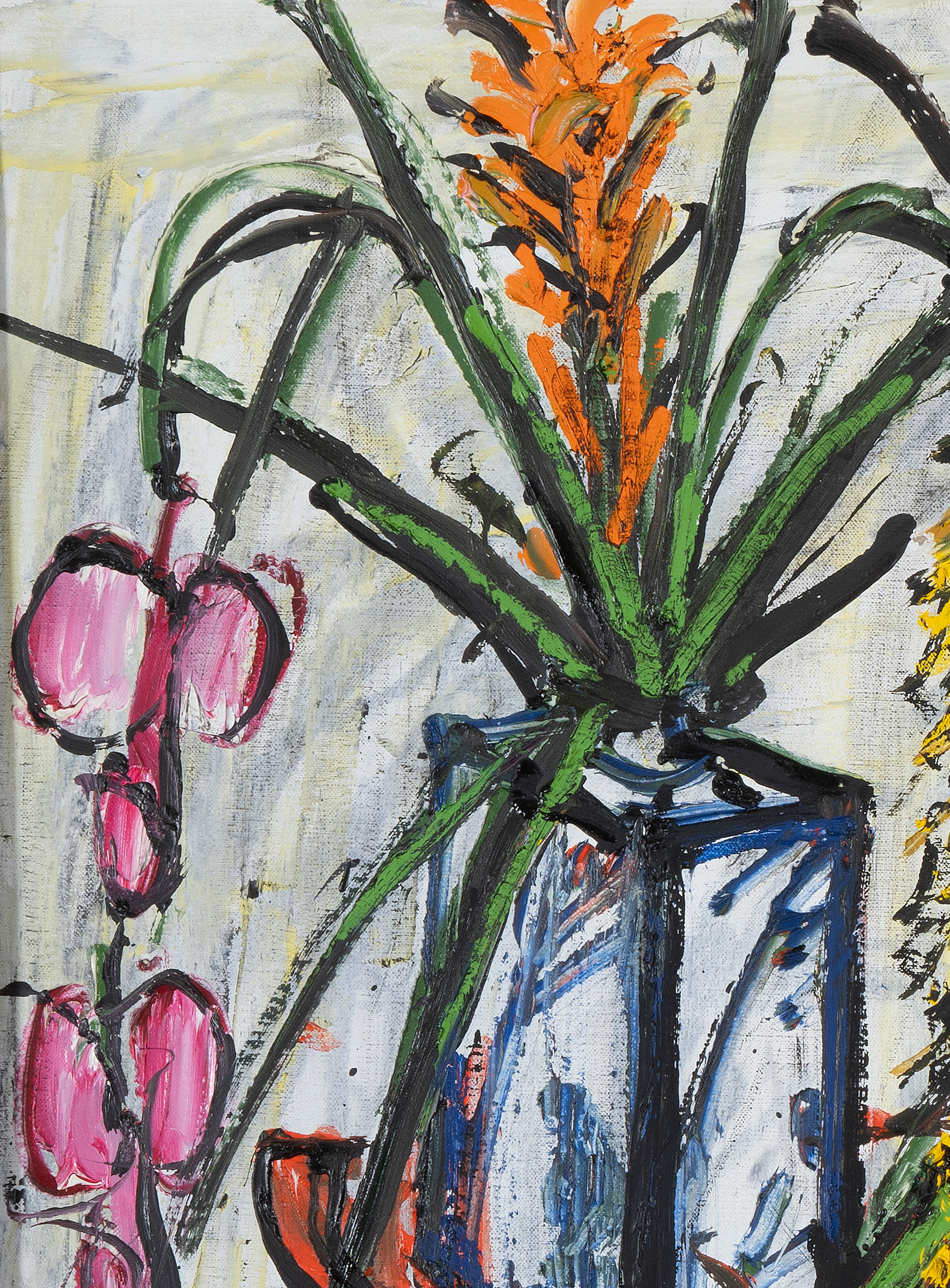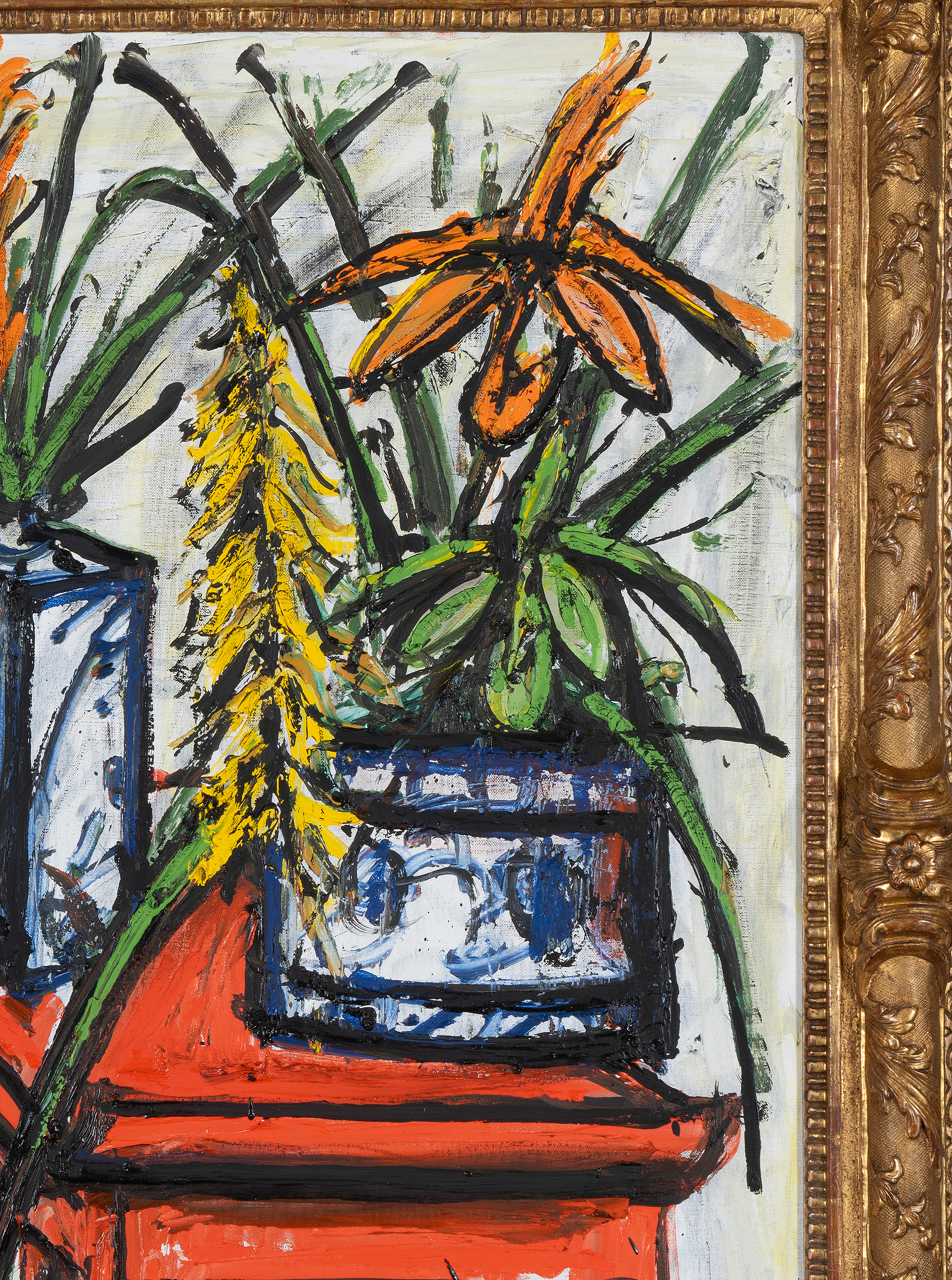 1999年法国具象派大师Bernard Buffet签名创作布面油画《中式桌上的花卉》