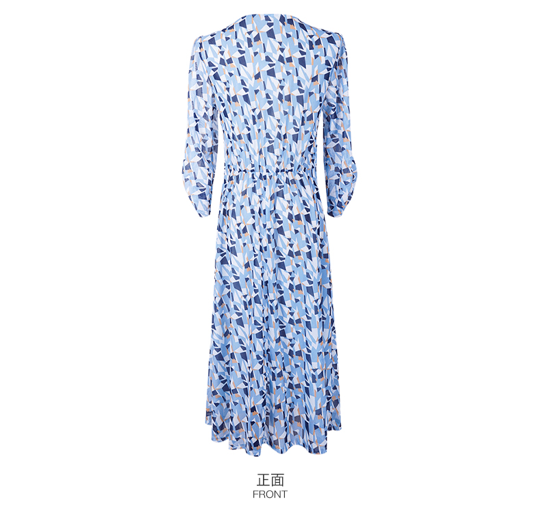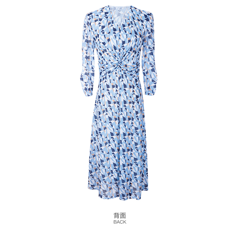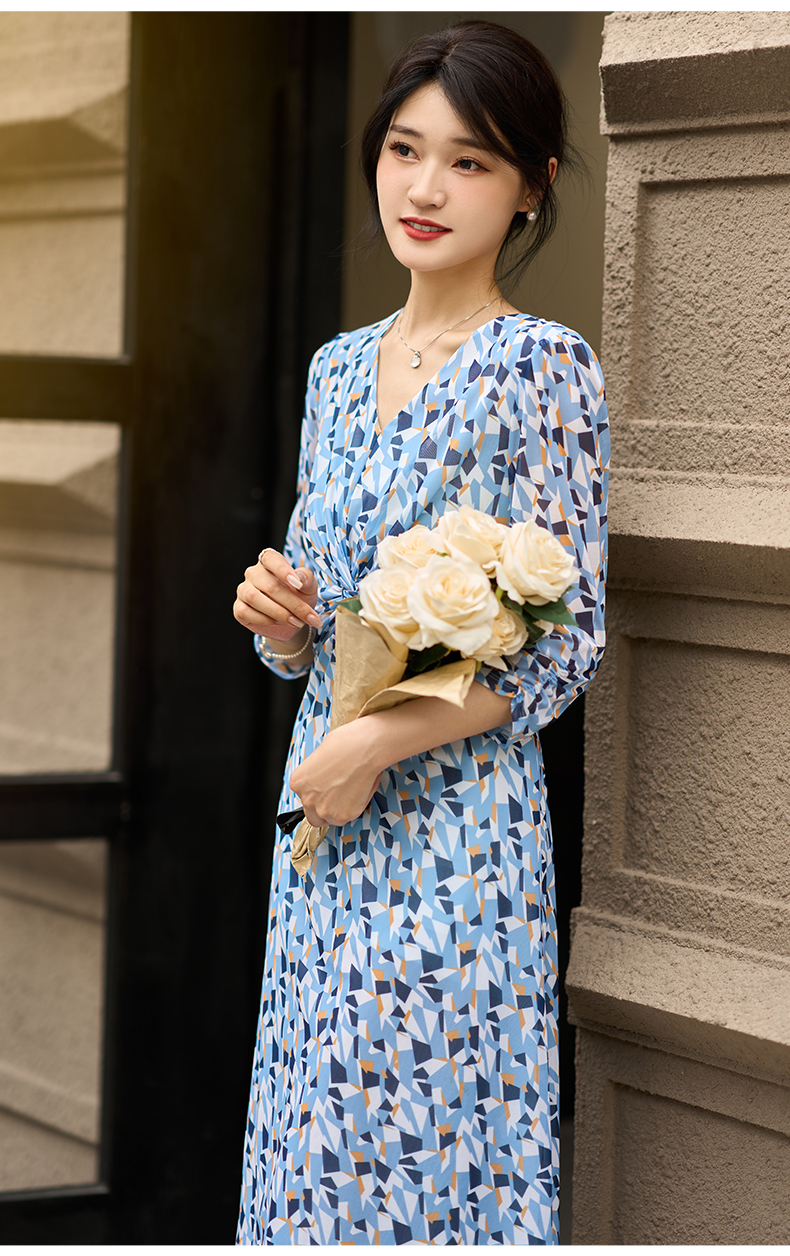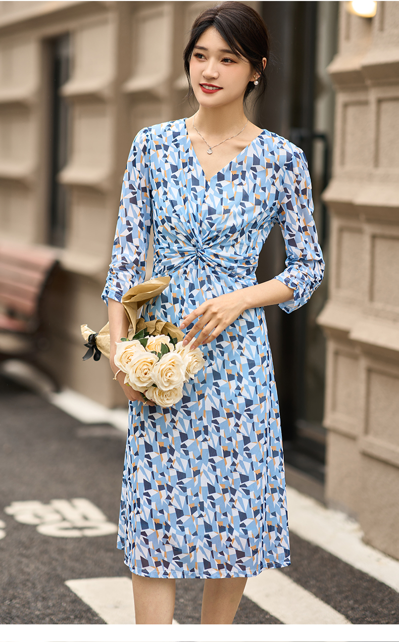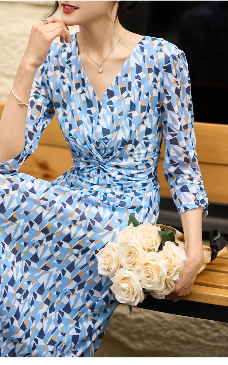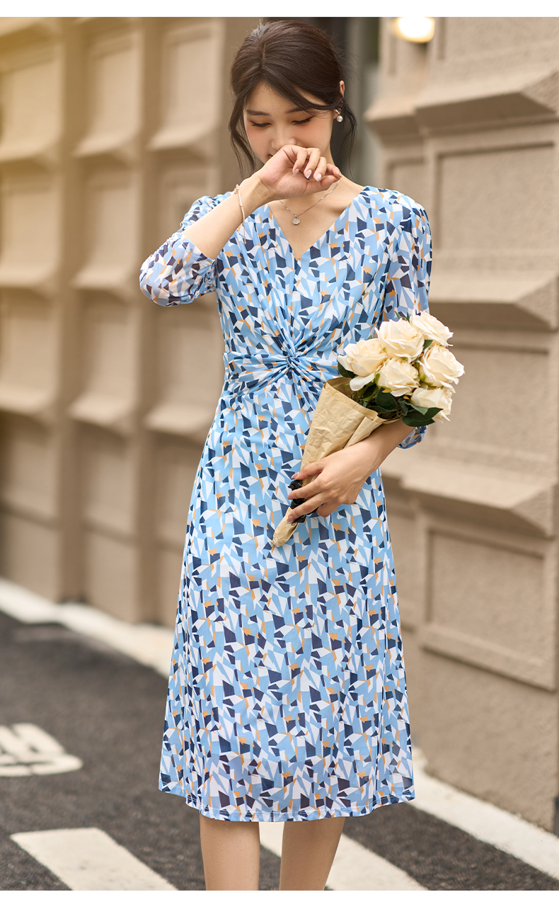 米思阳2025夏季新款优雅气质V领连衣裙设计感七分袖A字裙女1254