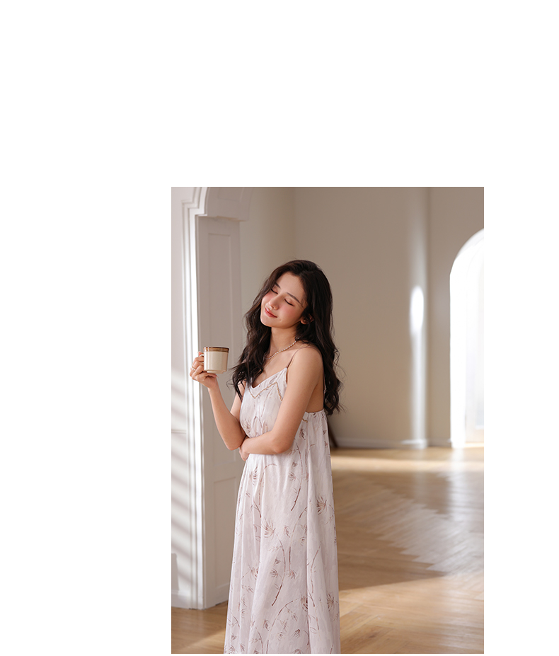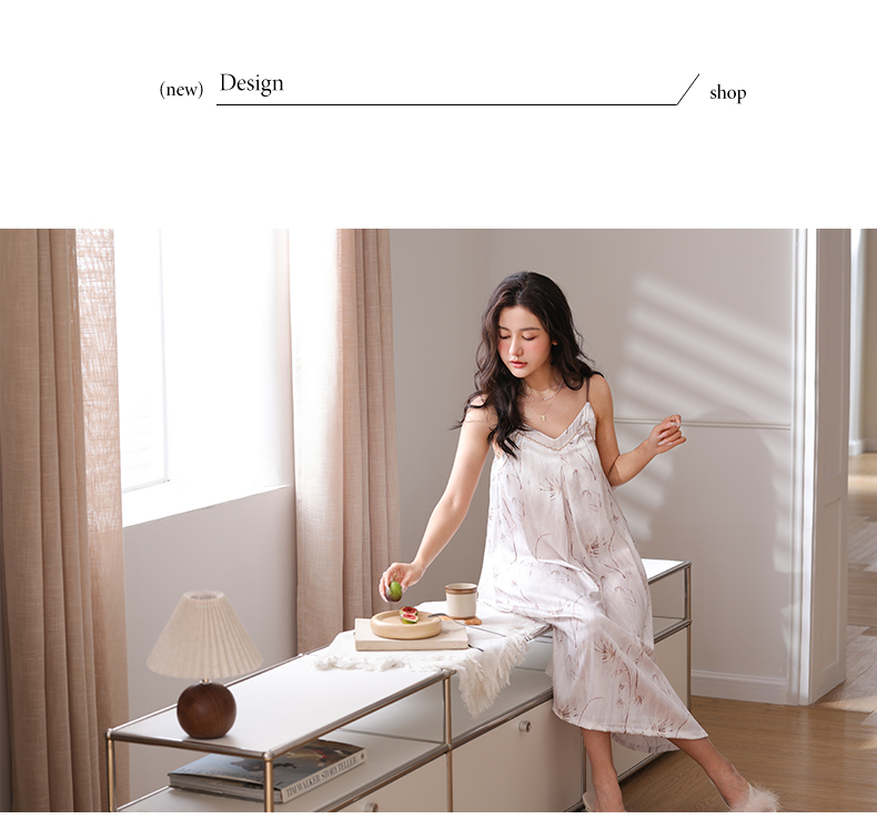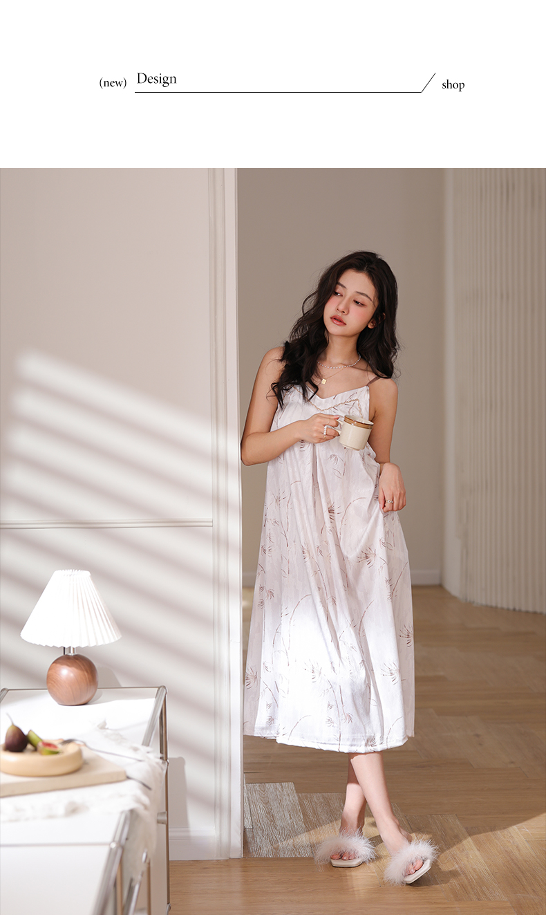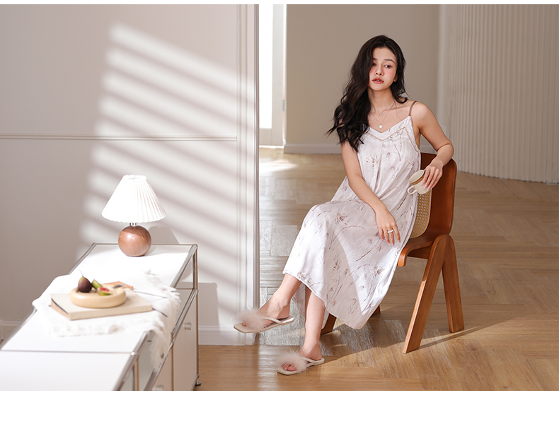 可人儿夏季凉感冰丝睡衣女小性感吊带睡裙少女中长款家居服连衣裙