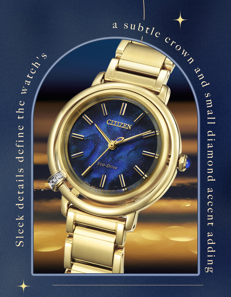 西铁城/CITIZEN人鱼海蓝圆盘光动能精致时尚女表EM1099-57L