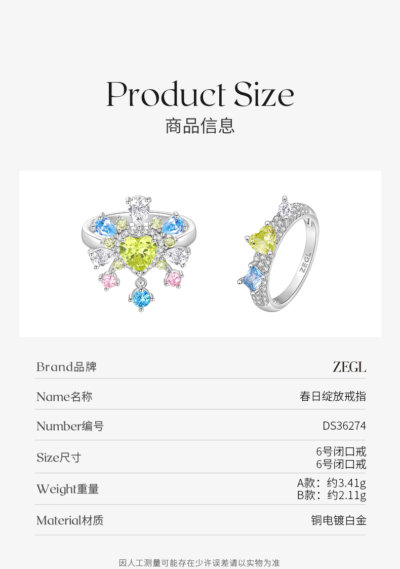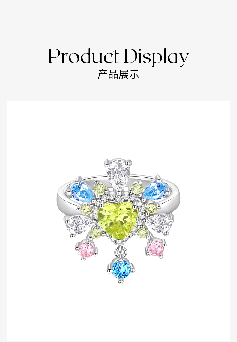 ZEGL设计师春日绽放系列彩色爱心戒指女轻奢小众设计指环食指戒子