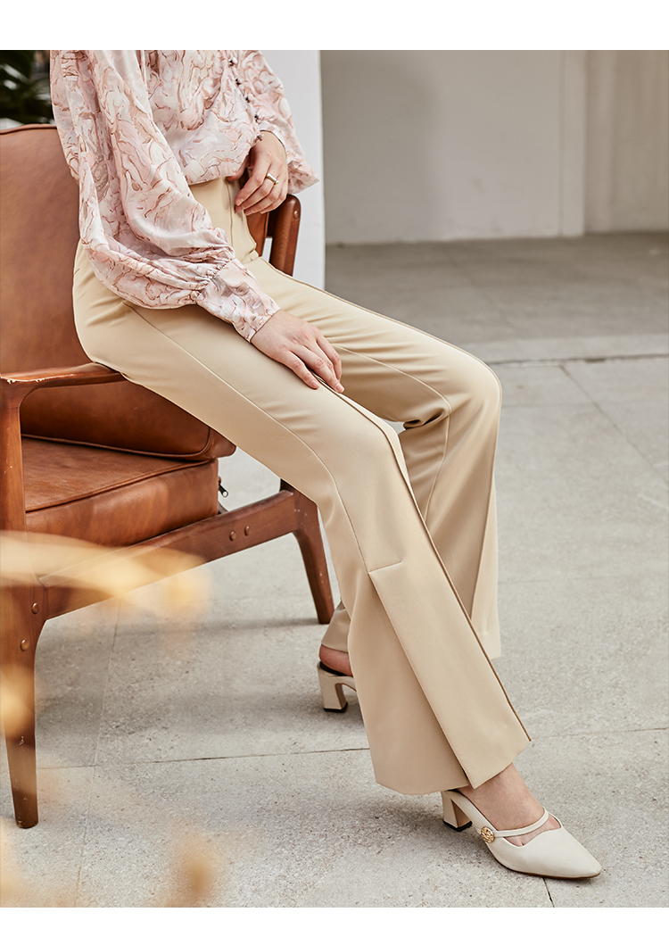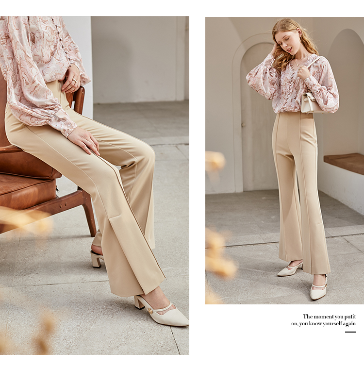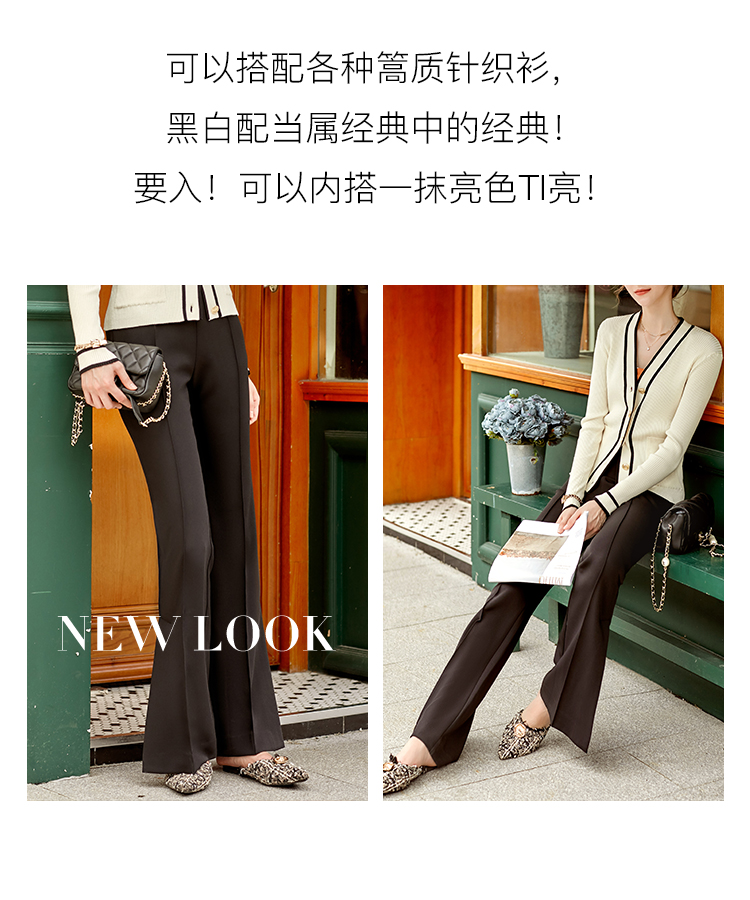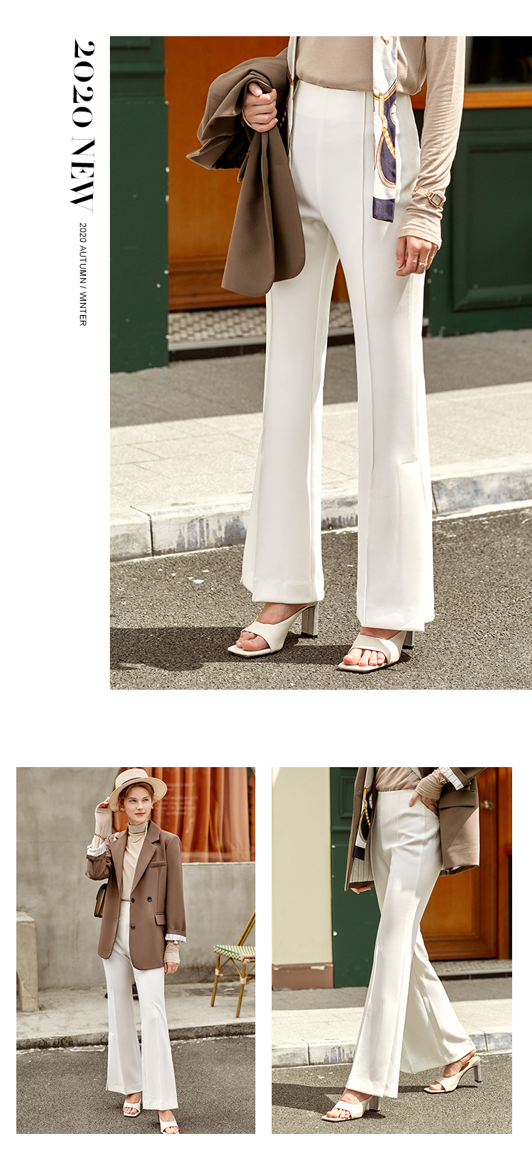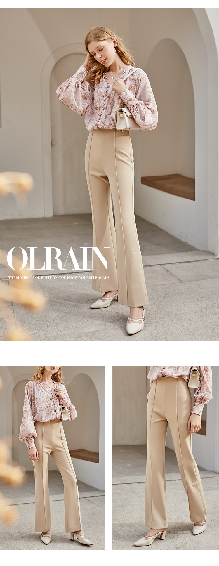 欧芮儿时尚简约开叉喇叭裤女2021冬季新款职业OL高腰休闲裤