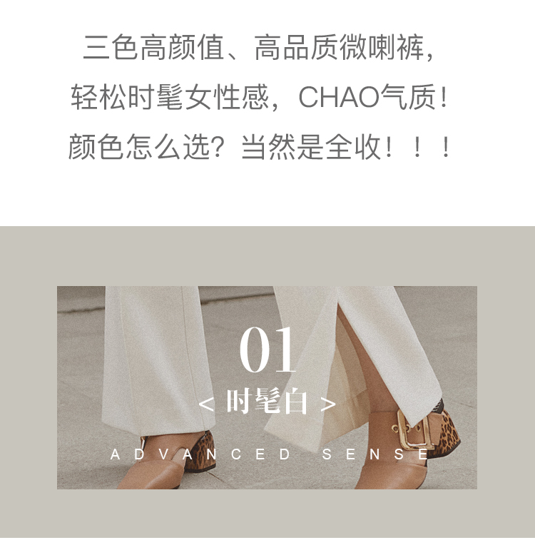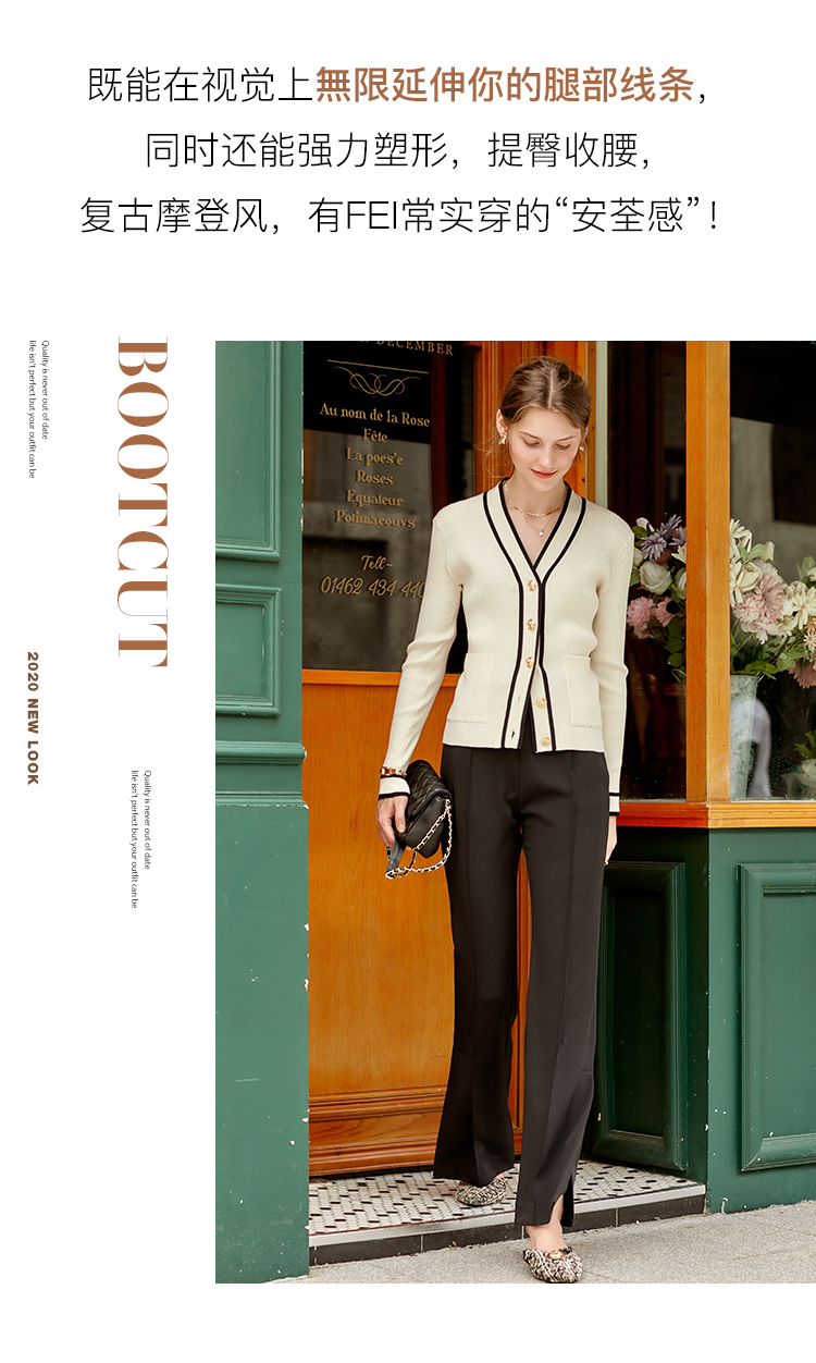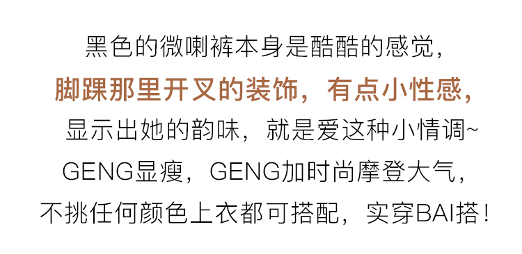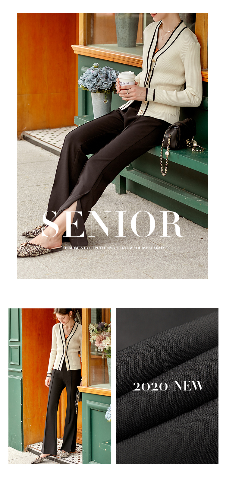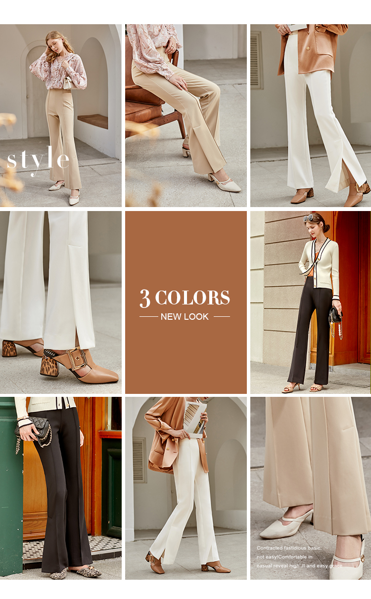 欧芮儿时尚简约开叉喇叭裤女2021冬季新款职业OL高腰休闲裤