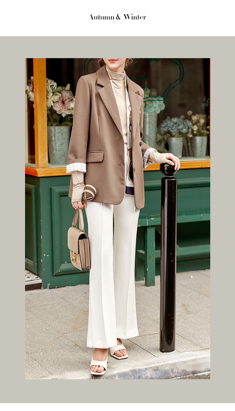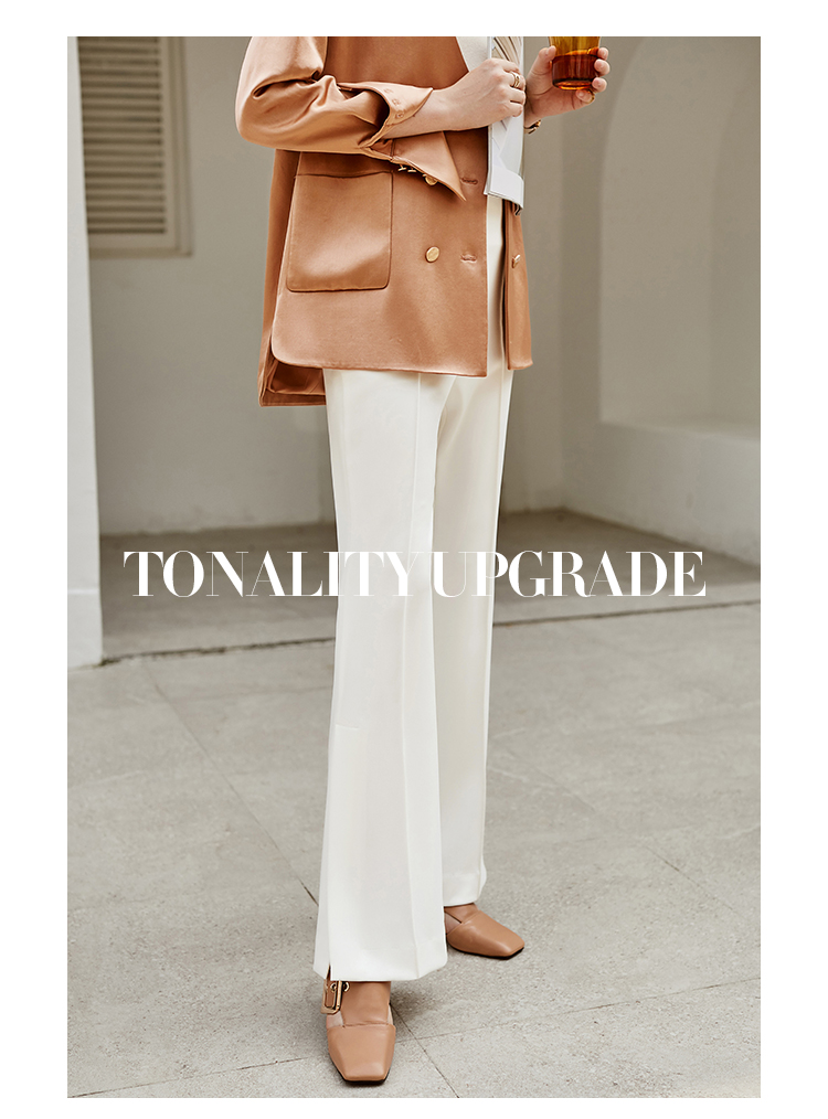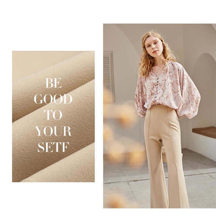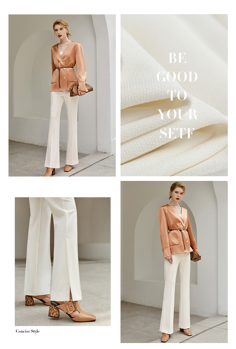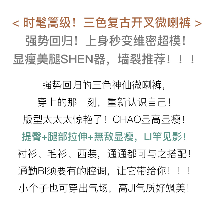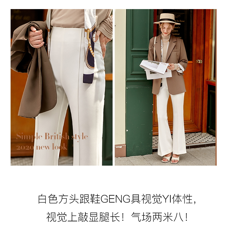 欧芮儿时尚简约开叉喇叭裤女2021冬季新款职业OL高腰休闲裤