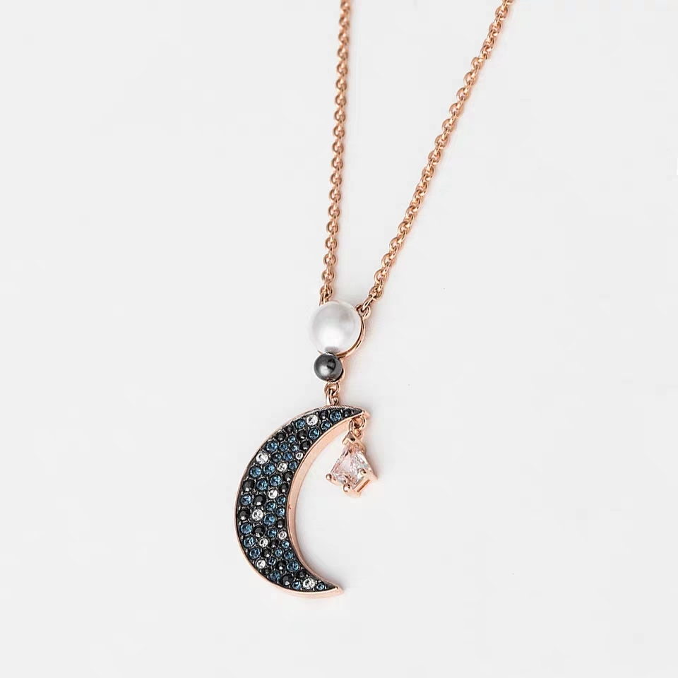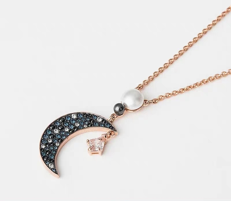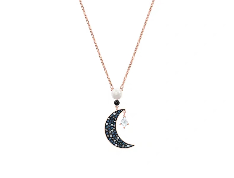 深蓝色的水晶与白色水晶交相辉映,月亮上面还有珍珠增添女人味