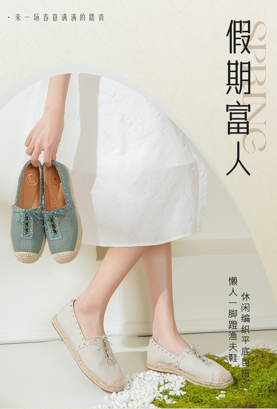 预售10天发|Safiya/索菲娅2025休闲编织平底百搭懒人一脚蹬渔夫鞋 SFD1112411