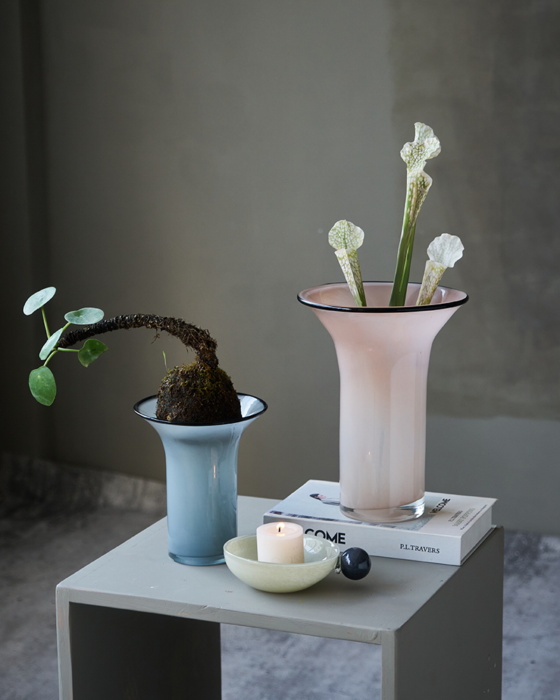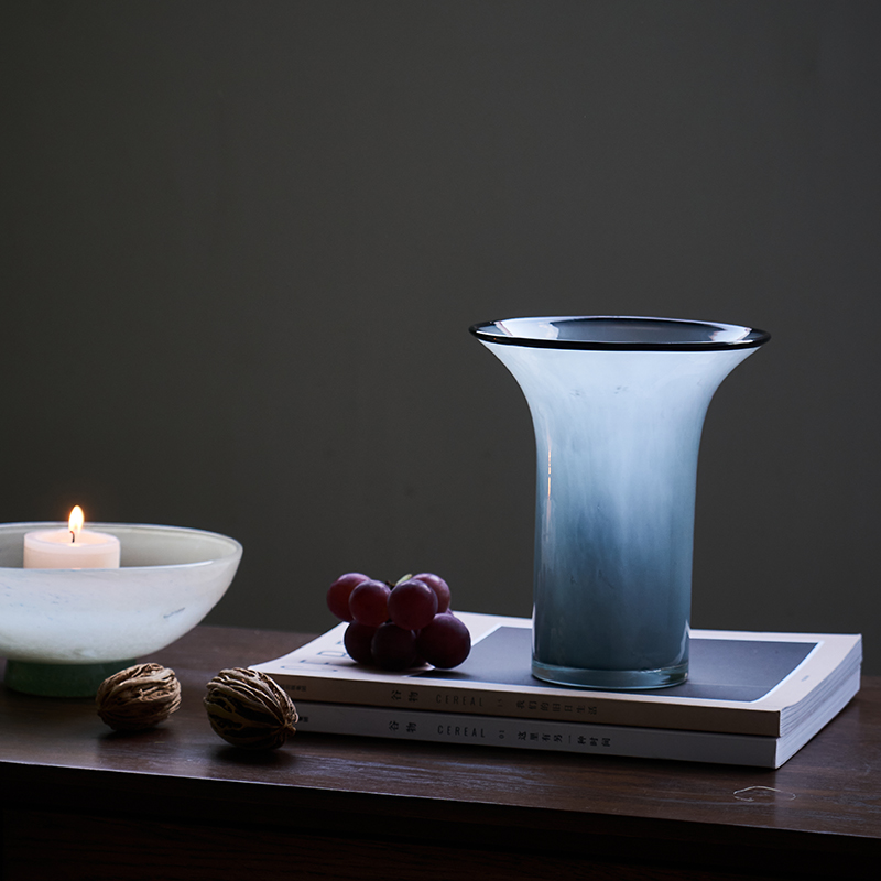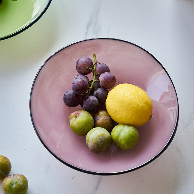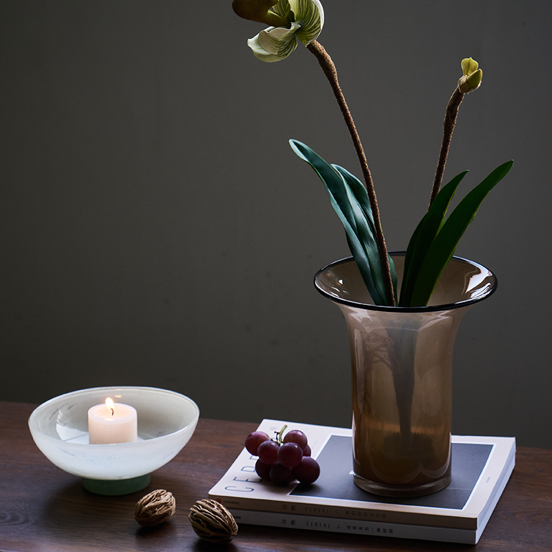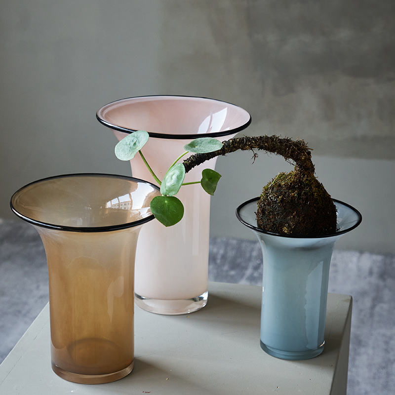 北欧风瓷粉黑边敞口花瓶鲜花餐桌电视柜简约创意手工家用玻璃果盘