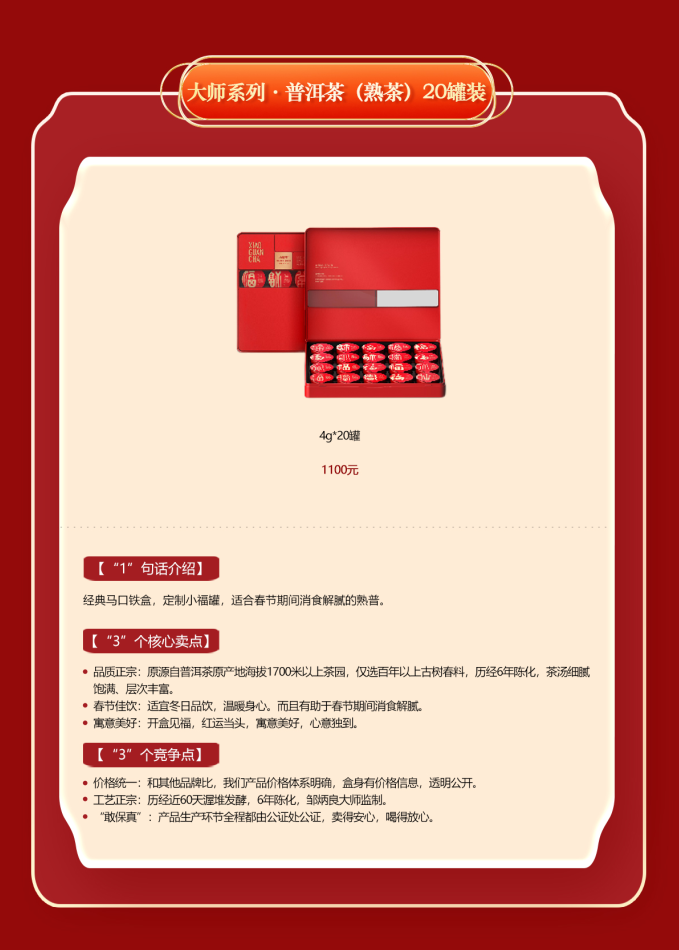 小罐茶【2025春节新品】大师系列▪普洱熟茶20罐装马口铁红盒