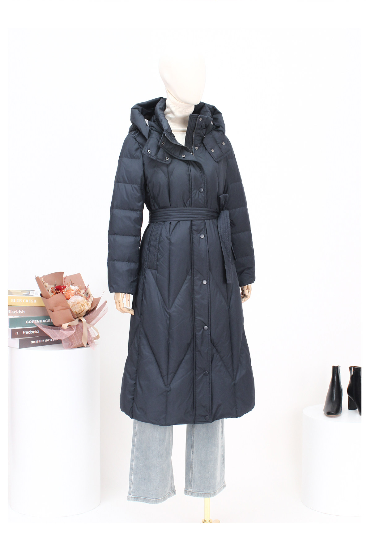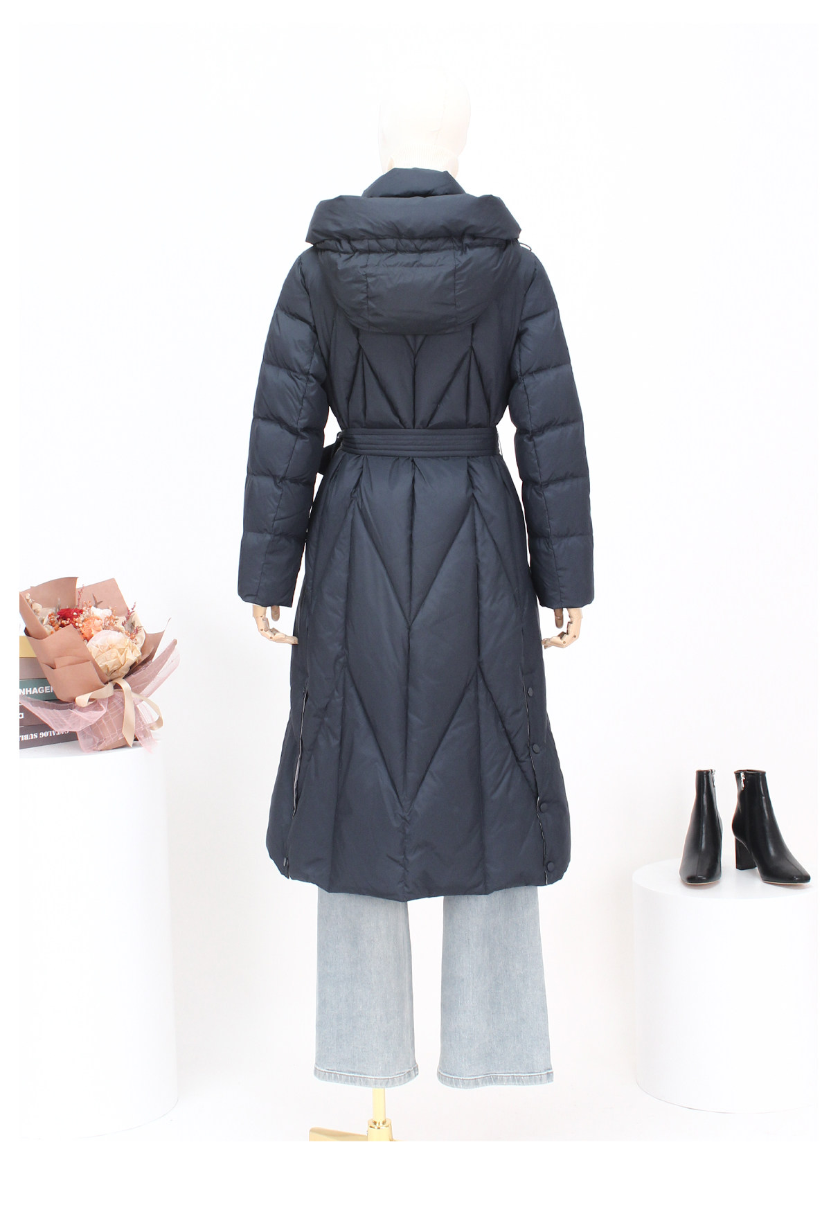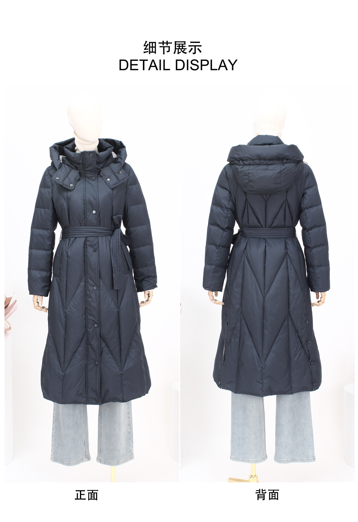 FOCALS福柯斯新款时尚休闲撞色拼接连帽长款保暖羽绒服F2YDD781B7