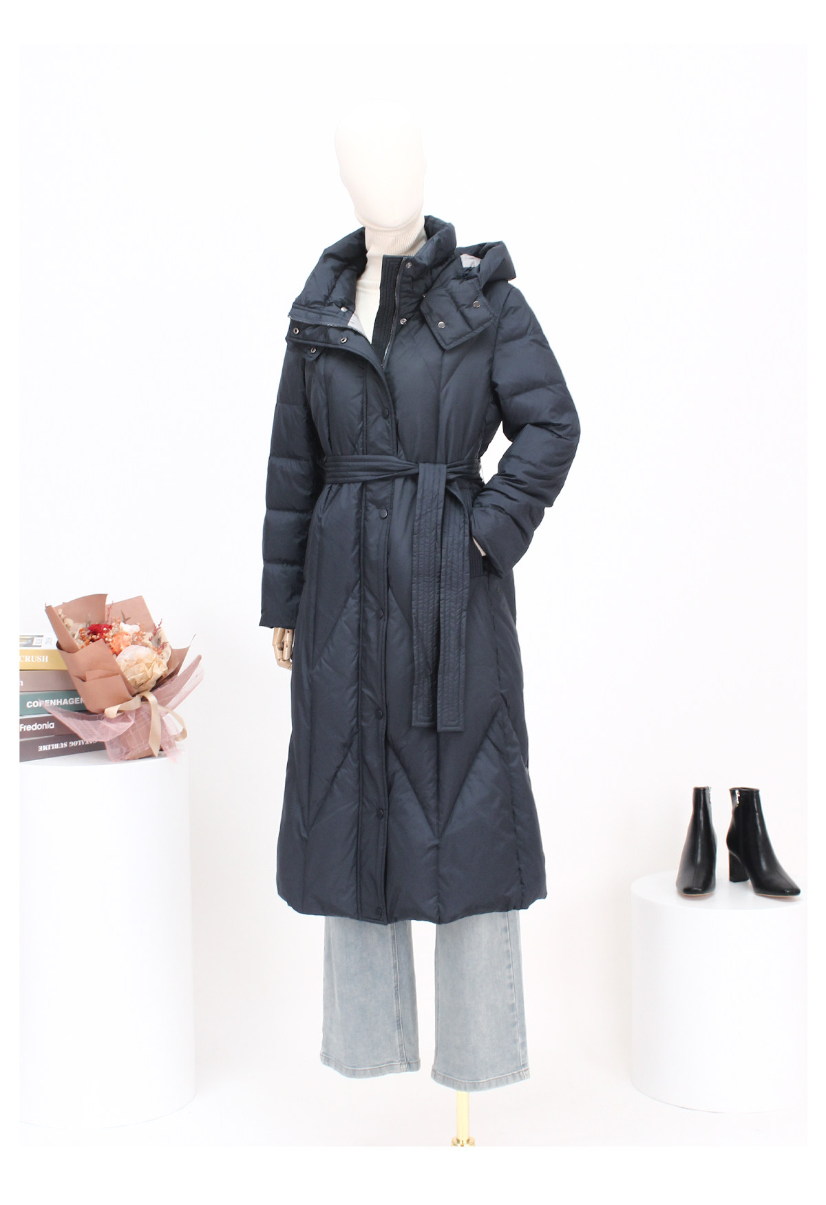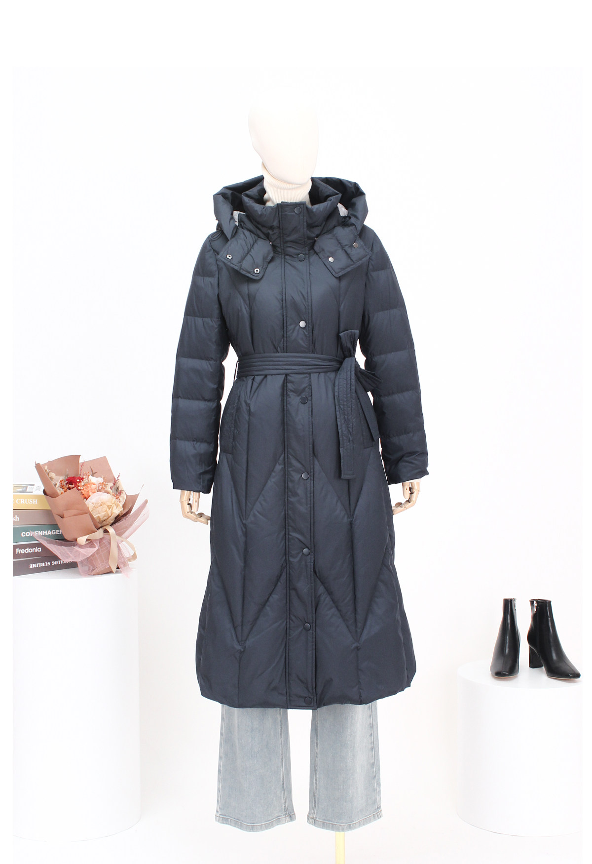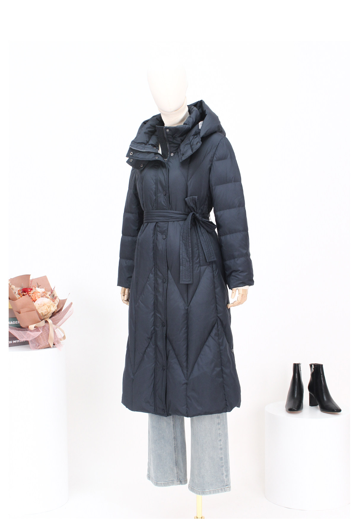 FOCALS福柯斯新款时尚休闲撞色拼接连帽长款保暖羽绒服F2YDD781B7