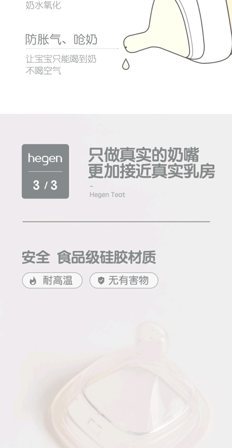 hegen原装进口婴儿宝宝智能奶嘴宽口径超软硅胶仿真母乳新生儿