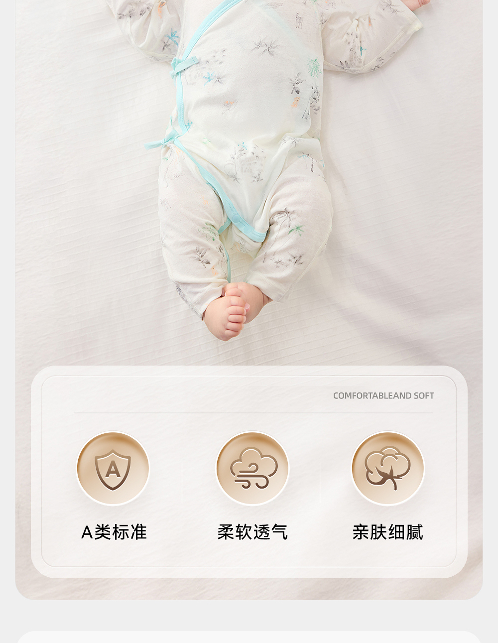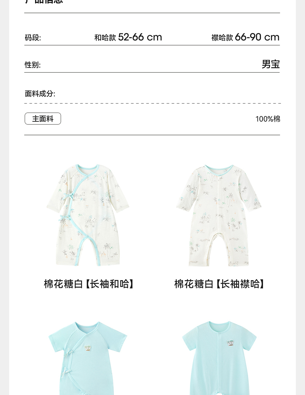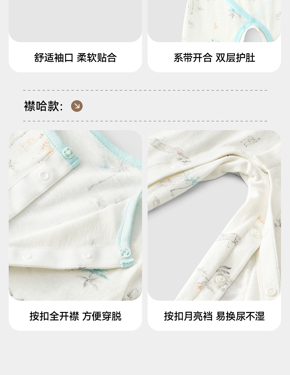 英氏婴儿连体襟蛤宝宝春夏四季透气薄款哈衣爬服家居服纯棉睡衣YLHAJ1R010A YLAAJ1R010A